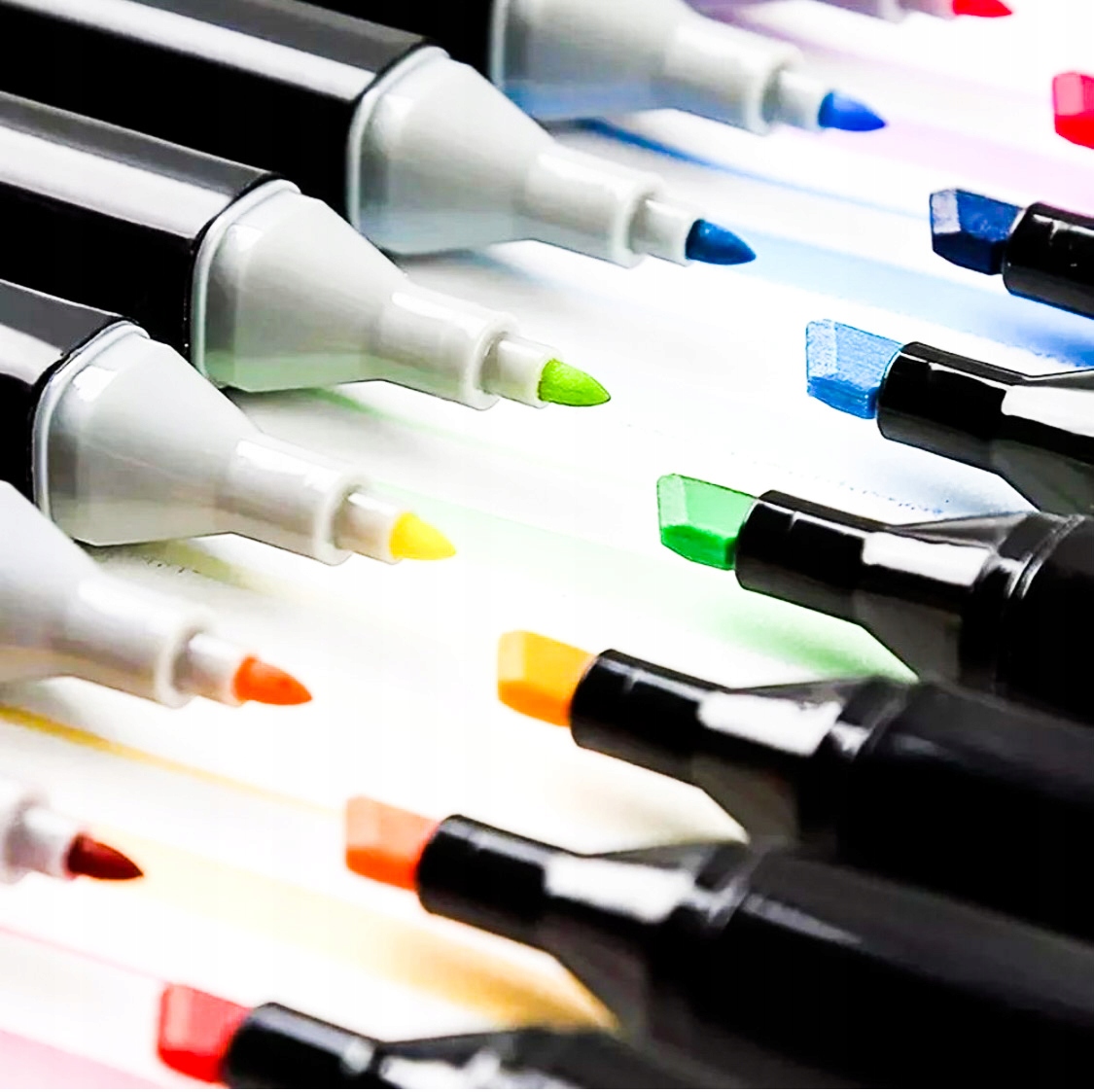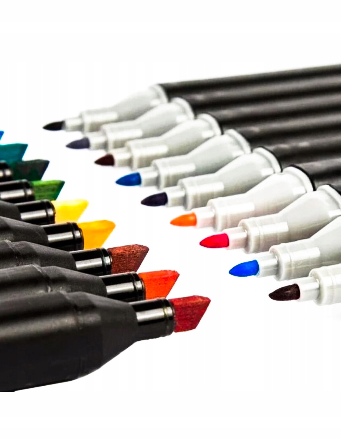 Отличные двусторонние маркеры, доступные в 80 цветах. Они характеризуются красивым цветом и отличным покрытием поверхности. Они идеально подходят для рисования и покрытия больших поверхностей. Маркеры имеют два кончика: широкий и тонкий (острый). Наконечники изготовлены из устойчивого к истиранию материала, поэтому маркеры прослужат долго. Волокно на концах не расщепляется, не расслаивается и не протекает.