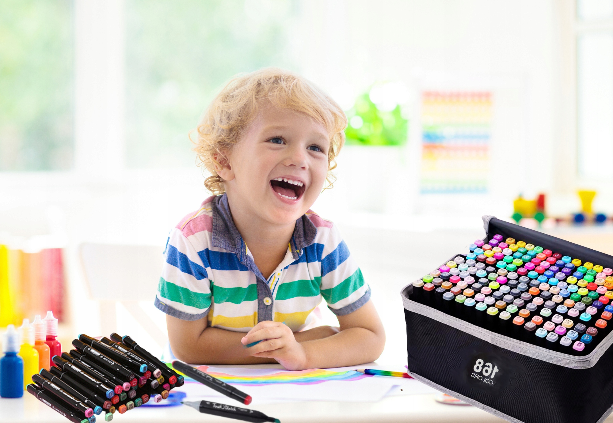Набор из 168 штук маркеров, упакованных в удобную сумку для переноски, — идеальное решение для тех, кто всегда в пути! Благодаря ему вы не только возьмете с собой любимые маркеры куда захотите, но и сохраните идеальный порядок, без лишнего беспорядка и поисков нужных цветов.