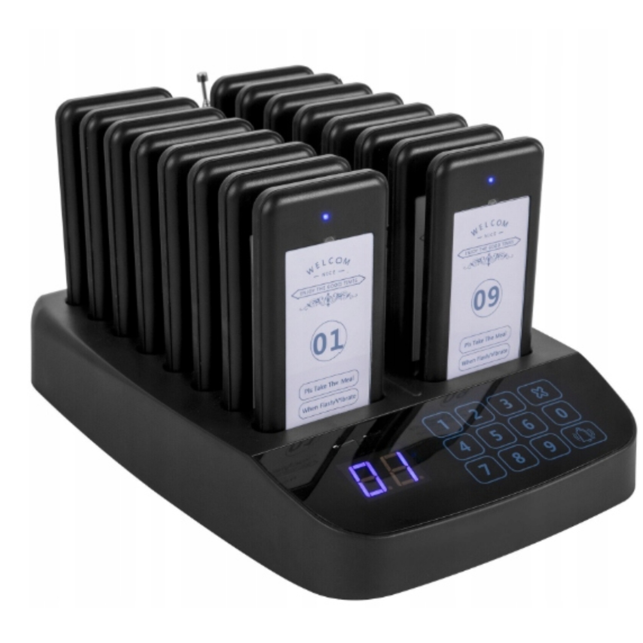 Пейджерная система ресторана состоит из 98-канальной базы данных звонков с беспроводной клавиатурой и 16 пейджеров.