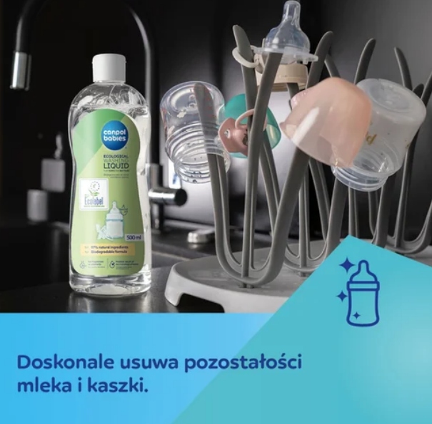 Экологическая жидкость для очистки бутылок и сосков Canpol Babies была создана для здоровья и безопасности детей. Жидкость гипоаллергена, бесцветная и содержит 97% натуральных ингредиентов. Эффективно и эффективно удаляет все остатки молока, соков, gridges и пищи. Это прекрасно смывает. Деликатный рецепт, без добавления ароматов и красителей, мягкий для рук. Продукт имеет нейтральный рН для кожи и получил положительный результат дерматологических испытаний. Упаковка очень эффективна - небольшого количества жидкости достаточно для эффективного очистки детских аксессуаров, таких как бутылки, соски, увешители, детские блюда, игрушки, а также молочные насосы. Органическая жидкость для очистки бутылок и сосков Canpol Babies имеет сертификат ЕС по экологичке - официальное европейское различие, предоставленное экологически чистым продуктам, которые соответствуют высококачественному и медицинскому стандарту: PL/019/009.