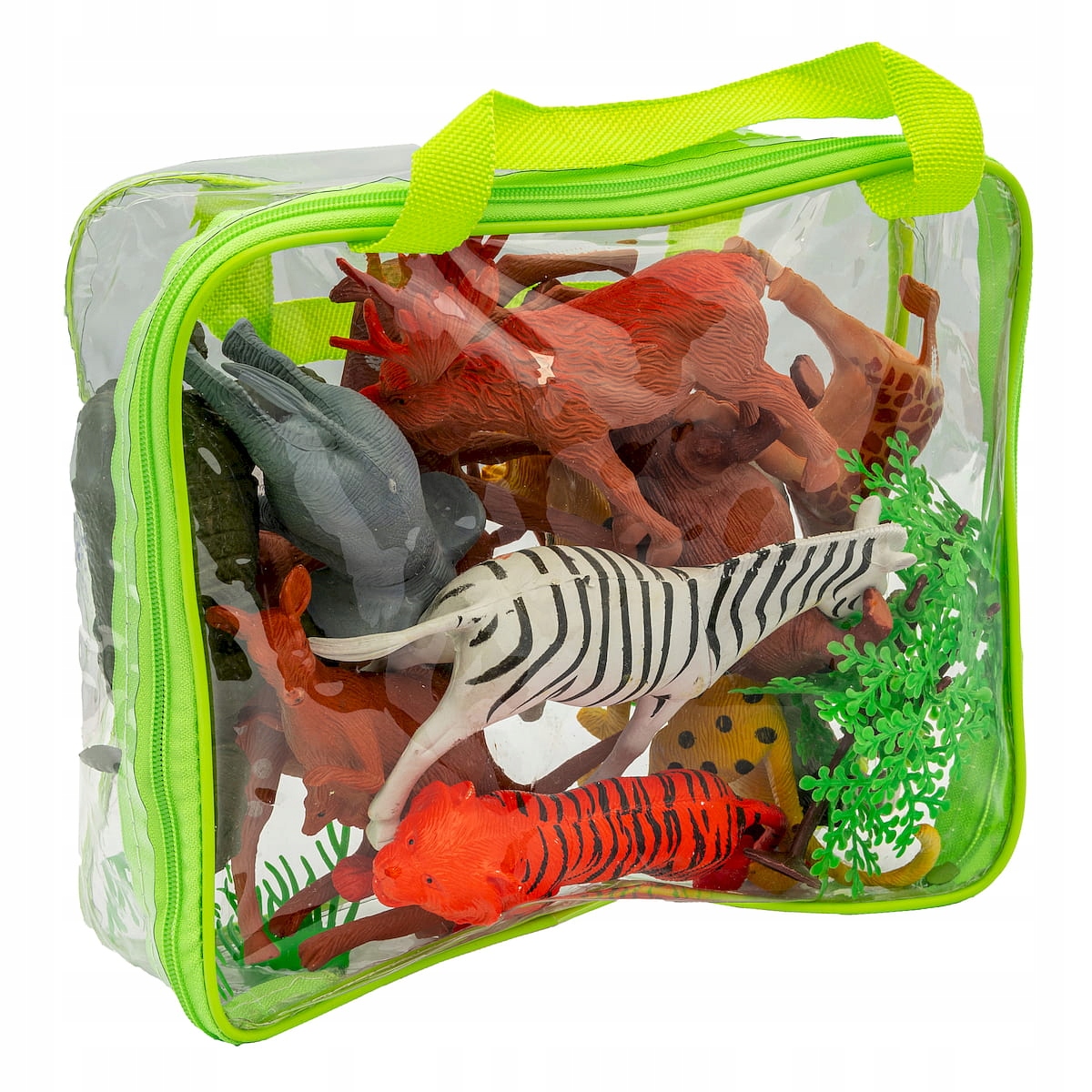 Набор фигурок животных из разных уголков мира. В комплект входят, среди прочего: модель жирафа, слона, зебры, льва, тигра. В набор также входят модели флоры.