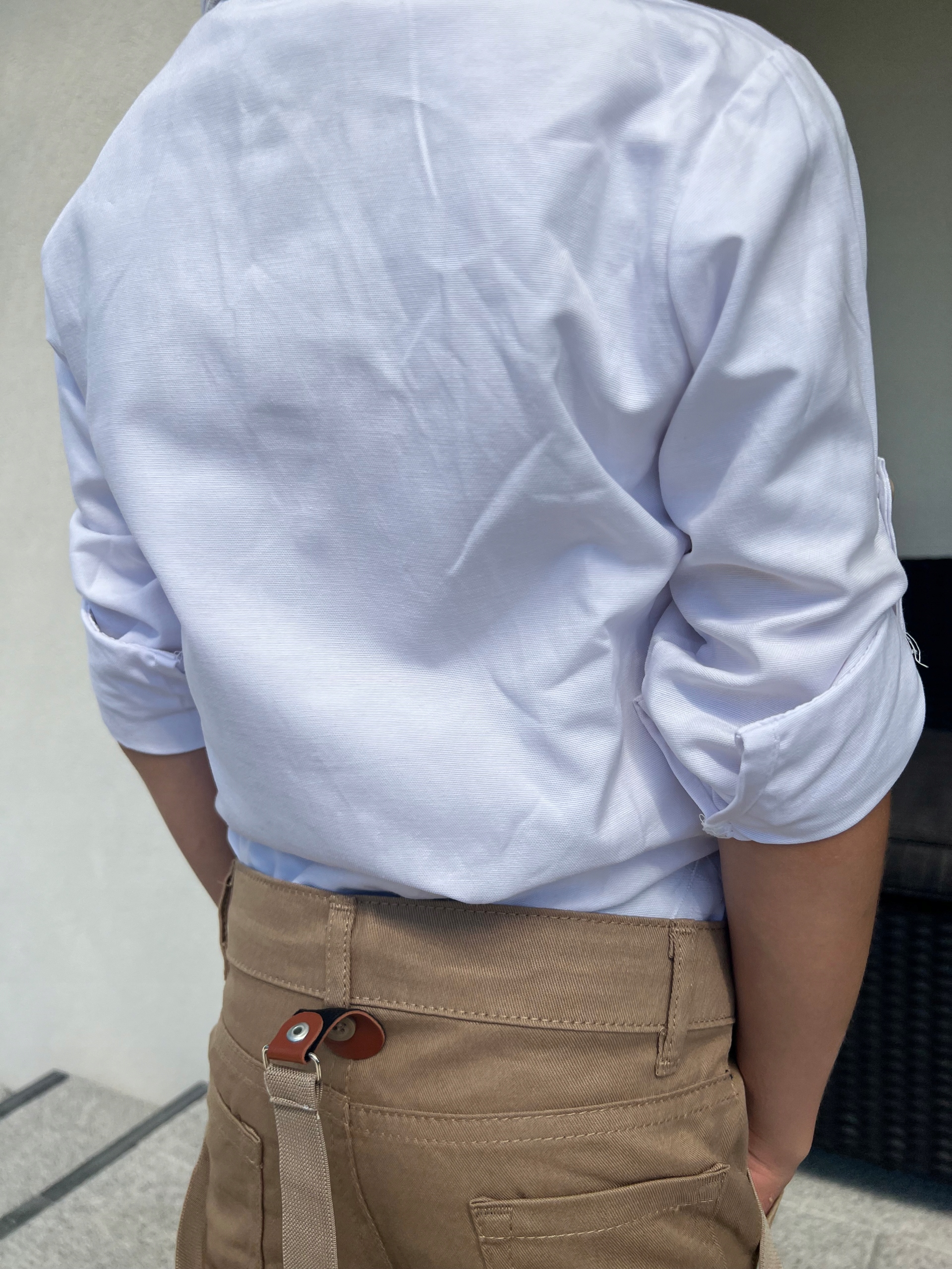 Набор элегантных мальчиков из белой рубашки гладко бежевые брюки. 92