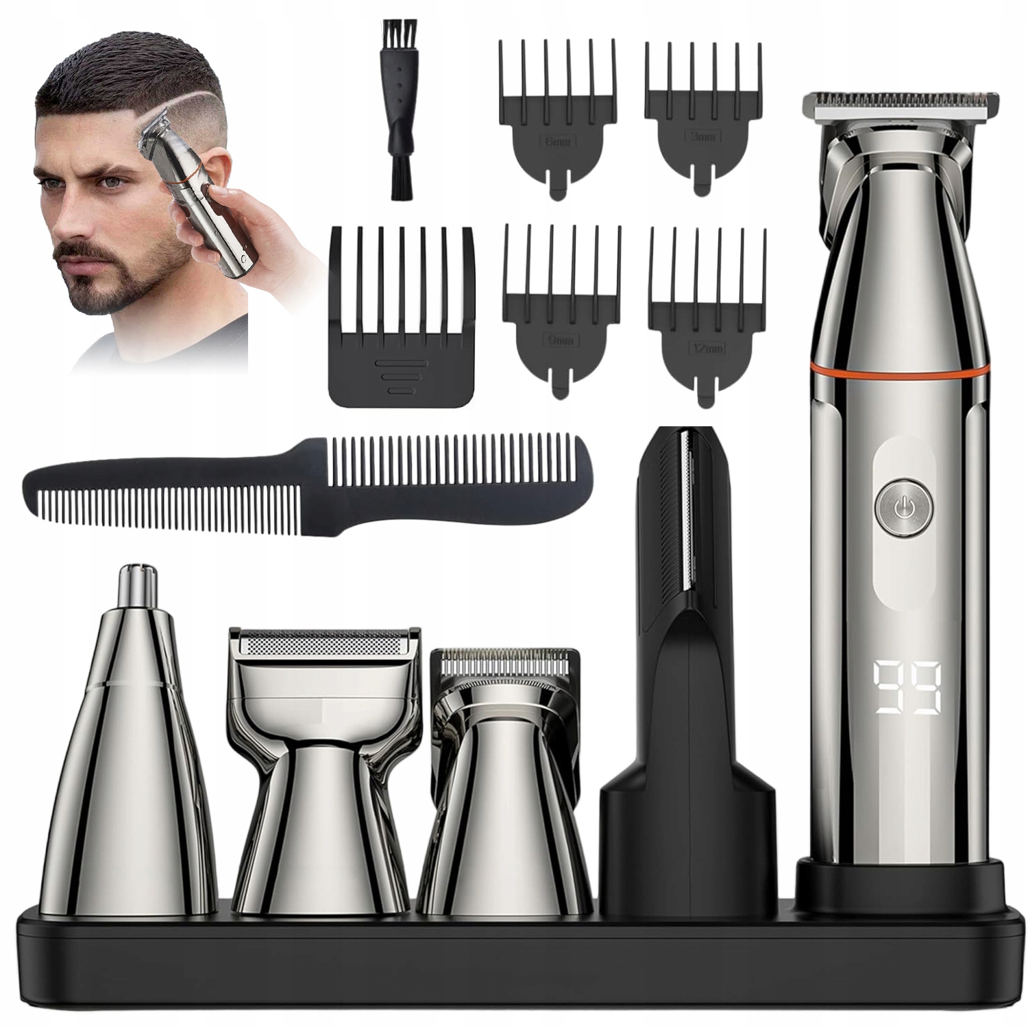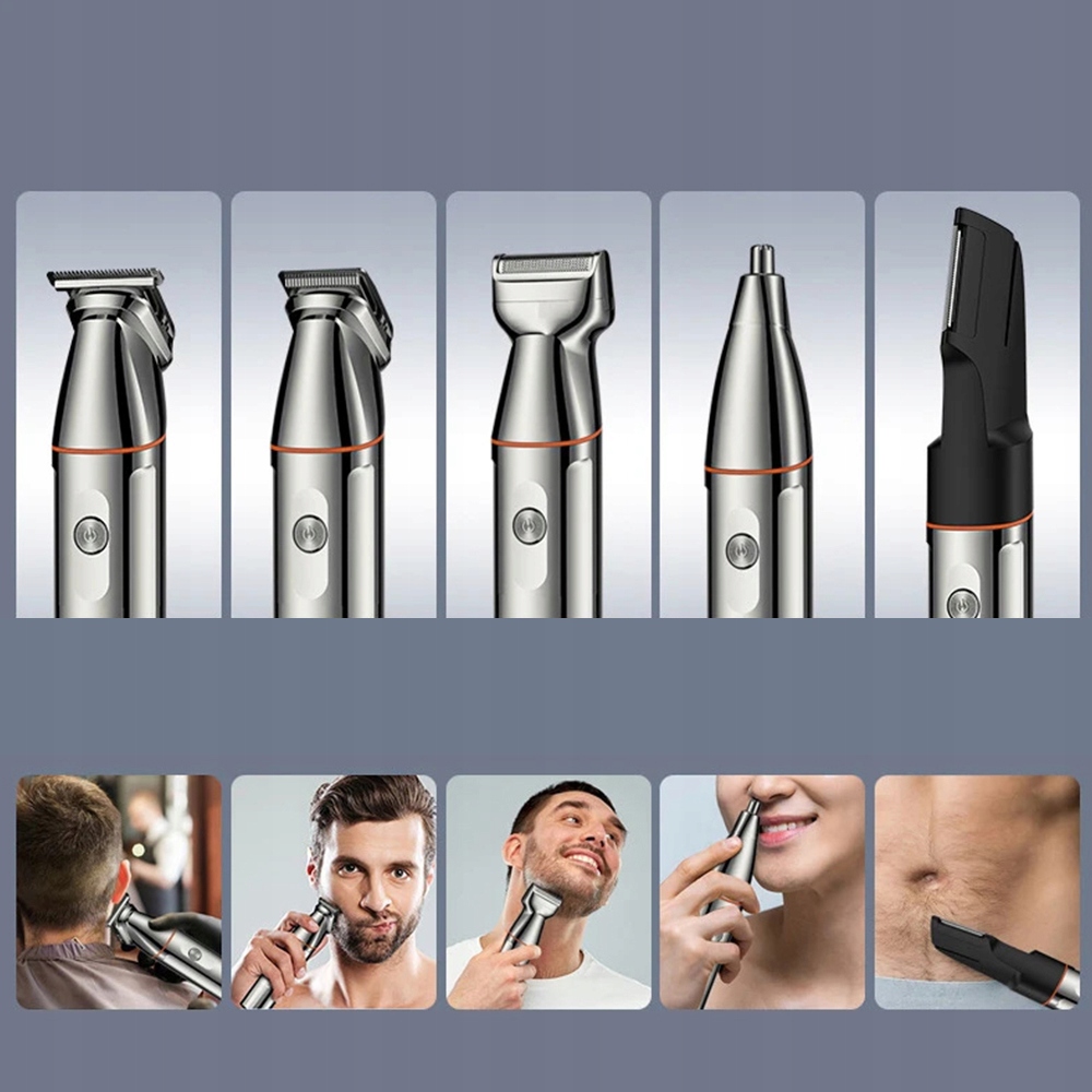 Оснащен 5 различными режущими головками - Т-образной основной головкой, триммером для бороды, триммером для волос в носу, триммером для волос на теле триммер и бритвенная головка с фольгой. Идеально подходит для создания разнообразных причесок и стилей бороды.