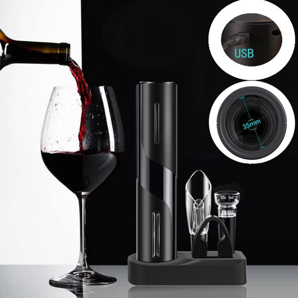 Набор открывателя для электрических бутылок, электрический разбор бутылок с повторной загрузкой, дозатор вина/резак для алюминиевой фольги/вакуумной винной пробки/хранения. Многофункциональный 5 в 1 винный аксессуары - лучший выбор для подарков и для личного использования, а набор также экономит деньги.