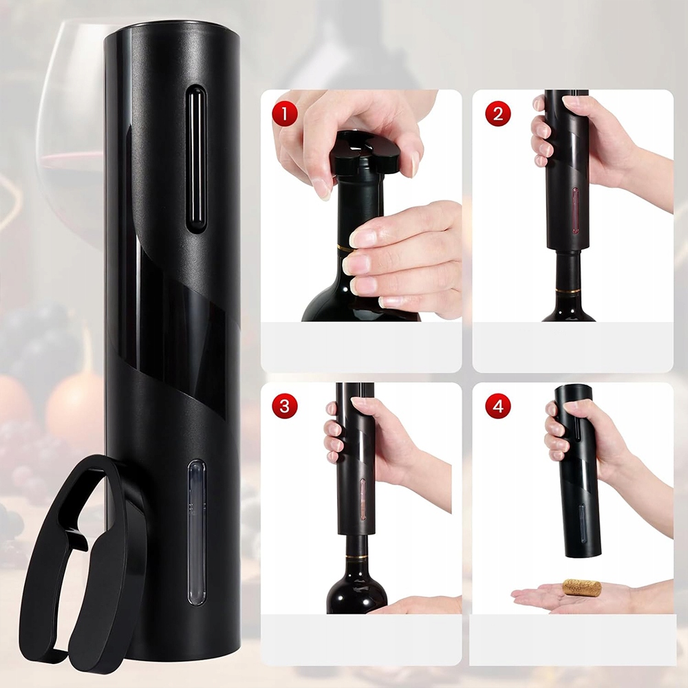 Просто аккуратно сжимайте и скручивается, чтобы снять прокладку из алюминиевой фольги, положите ее на бутылку вина, а затем осторожно нажмите, система удалит пробку под обнаружение давления. Тогда он выпускается автоматически. Вы можете быстро и легко открывать бутылки, не тянуя, скручивая или разбивая кусочки пробки.
