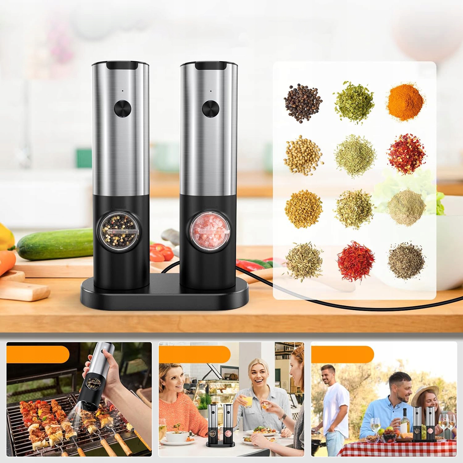 Набір електричних подрібнювачів для солі та перцю з USB-підсвічуванням для зарядки