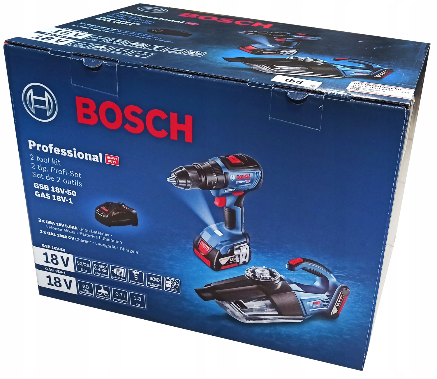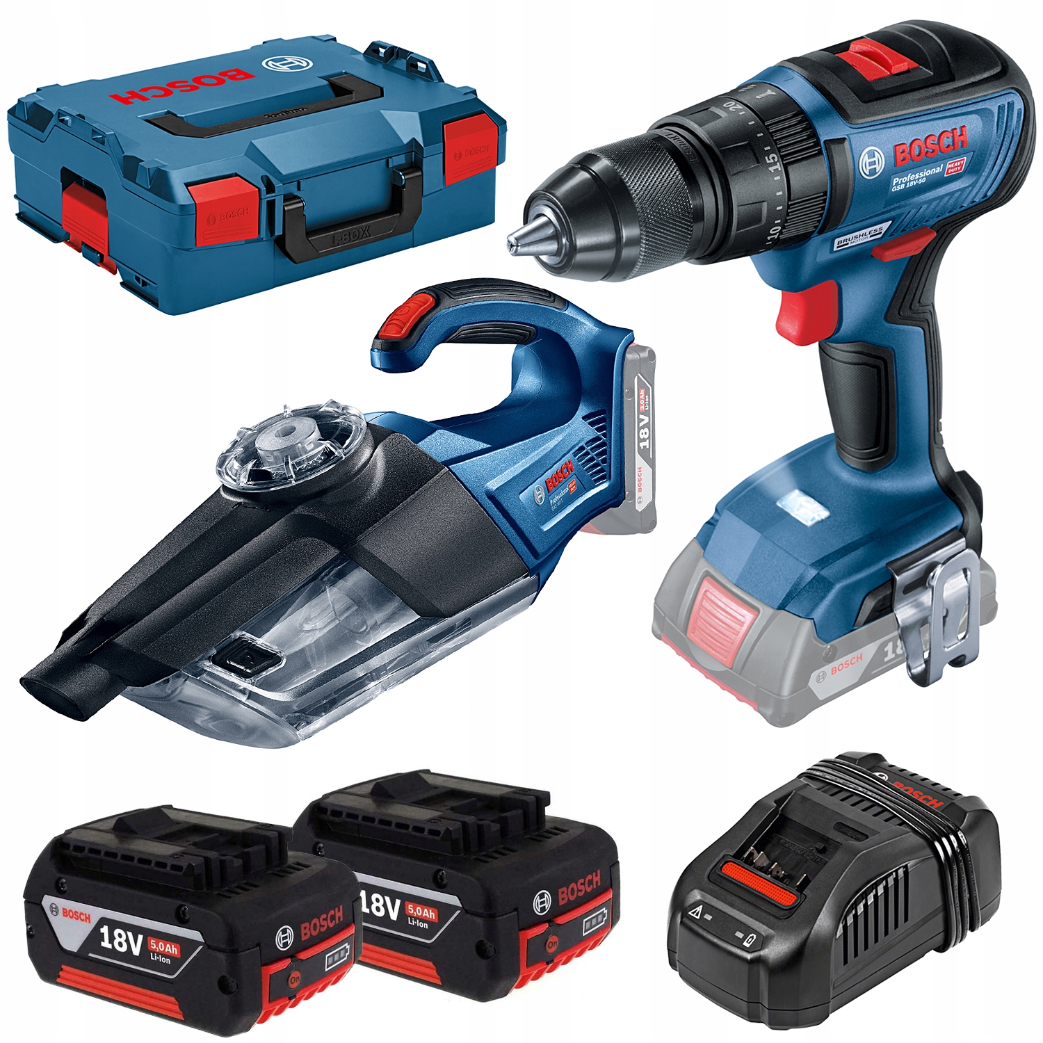 Набор электроинструмента 18V GSB 18V-50/GAS 18V-1 Bosch 0615990M44 состоит из аккумуляторной дрели и пылесоса, двух аккумуляторов и зарядного устройства. Все поставляется в чемодане, что делает транспортировку электроинструмента безопасной и удобной.
