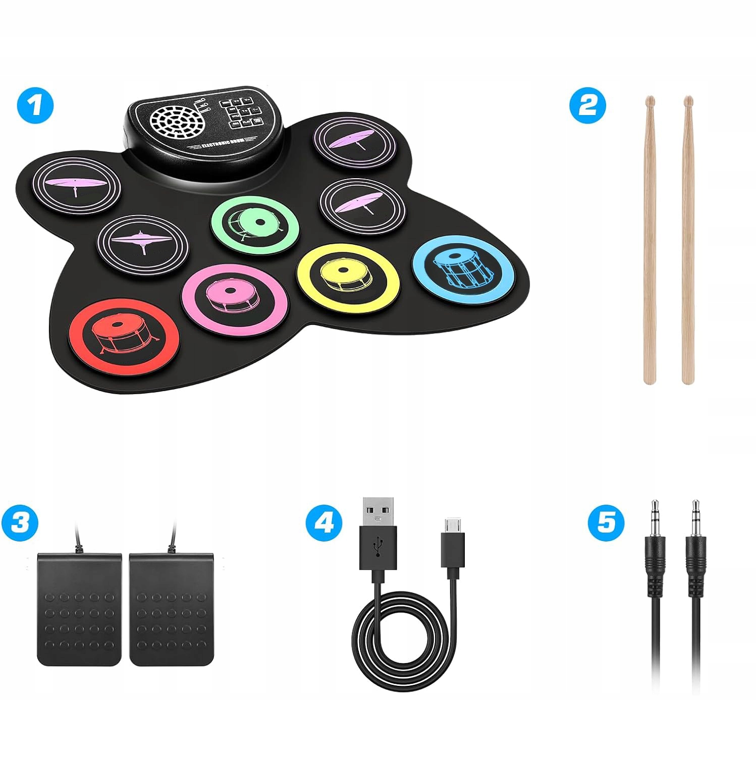 НАБОР ЭЛЕКТРОННЫХ БАРАБАН ИЗ 9 ПАДОВ ДЛЯ ВЗРОСЛЫХ И ДЕТЕЙ, ПОРТАТИВНЫХ