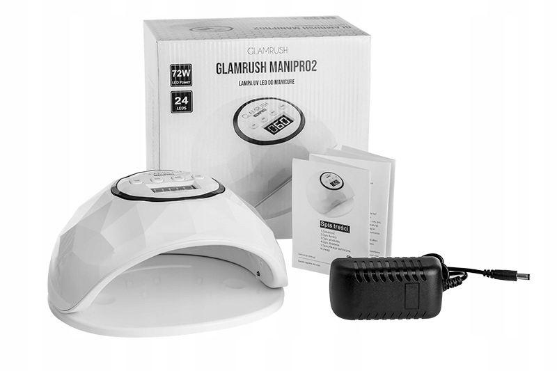 - 1x УФ-светодиодная лампа GlamRush ManiPro2 86 Вт (Очень мощная лампа, затвердевает за 10 секунд — см. таблицу ниже)