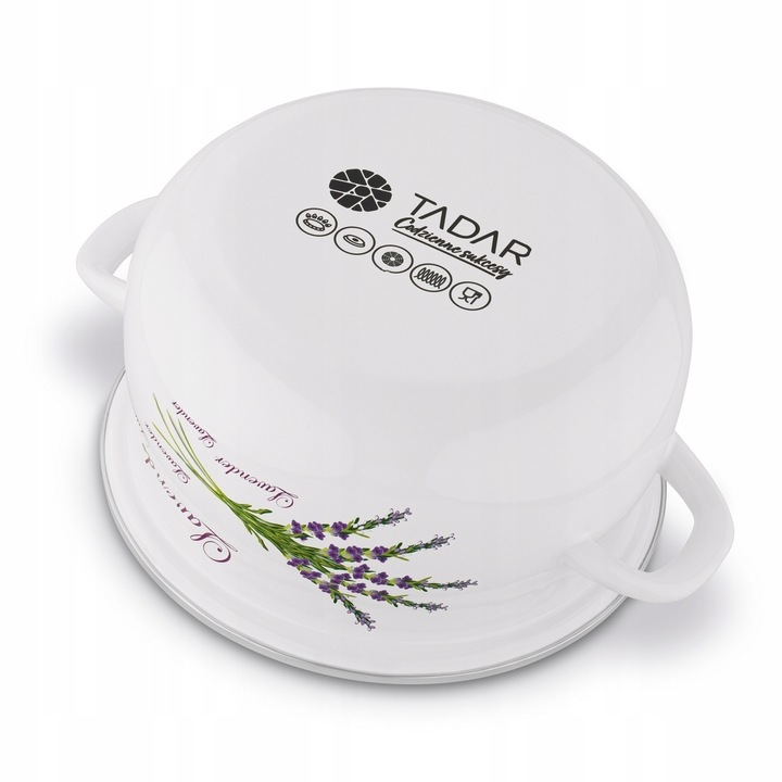 Набор эмалированных кастрюль Tadar Lawenda, 8 элементов, состоит из кастрюль емкостью 1,9/2,8/3,6/4,9 литра. Они позволяют безопасно хранить продукты (не меняют их вкус, запах и свойства). Эмаль прочная, стойкая, противоаллергическая и антибактериальная. Благодаря ее функциональности и крышкам, закрывающим циркуляцию, вы быстрее приготовите ужин и приготовите тушеные блюда. Посуда также изготовлена из стали. Именно поэтому они так хорошо переносят высокие температуры и имеют адекватную защиту от деформации. Ручки у них цельные и литые. Ручка крышки изготовлена из медленнонагревающегося материала. Комплект может похвастаться быстрым и равномерным поглощением тепла. Таким образом вы сэкономите не только время, но и электроэнергию на индукционных, керамических, газовых и электрических плитах. Благодаря красочному узору на эмалированном покрытии они прекрасно смотрятся на любой кухне.