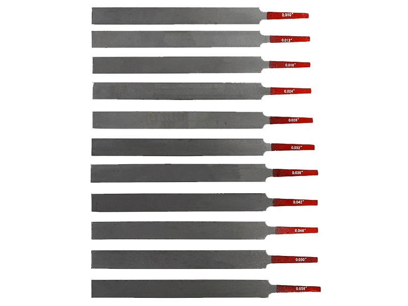 Размеры файлов: 0,010 ", 0,013", 0,016 ", 0,024", 0,028 ", 0,032", 0,036 ", 0,042", 0,046 ", 0,050", 0,050 ", 0,050" 0,056 "