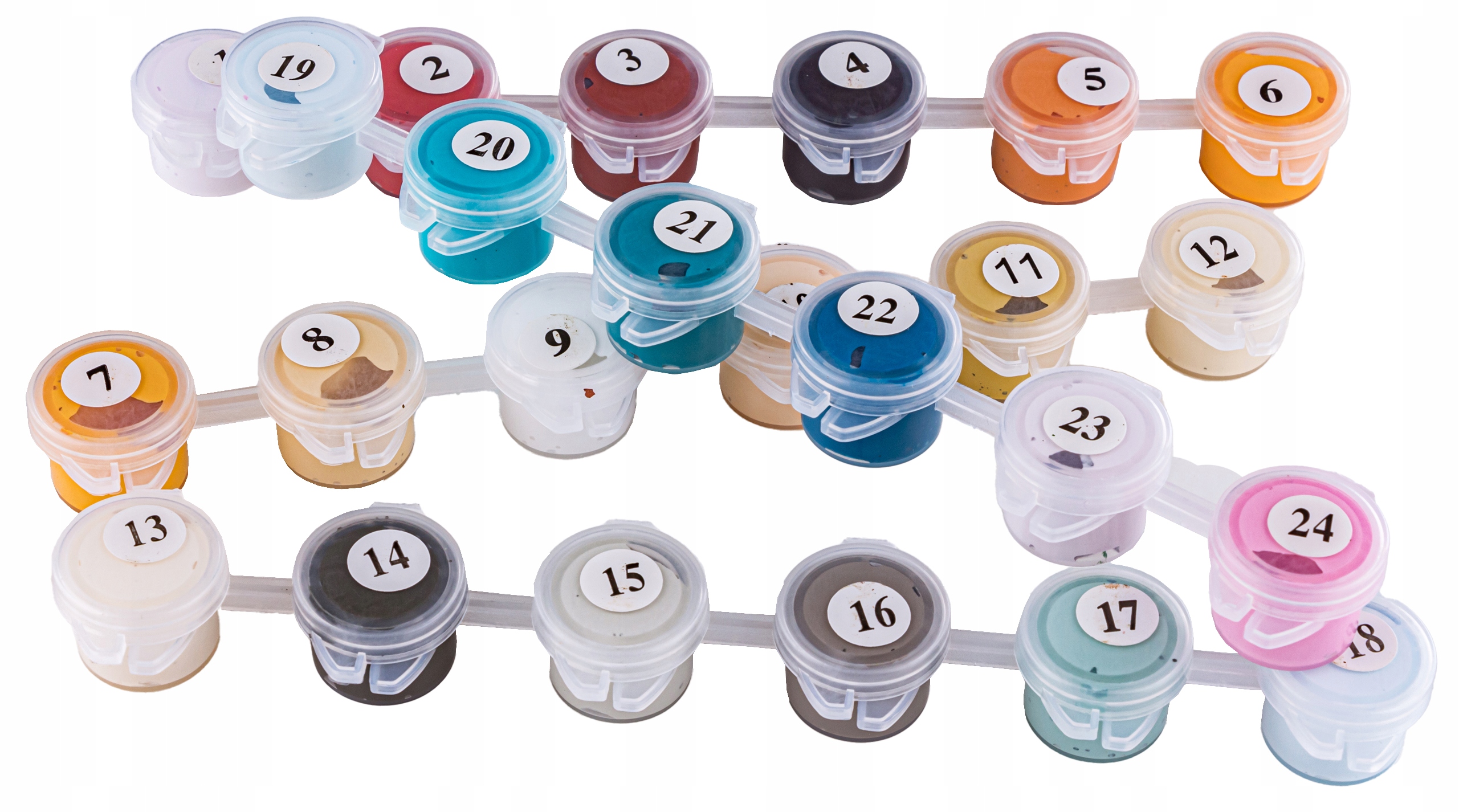 2️⃣ Вы можете начать работу с любым цветом, например, с тем, который вам нравится. большинство. Выберите цвет, с которого хотите начать, запомните номер на крышке и аккуратно откройте контейнер с краской.