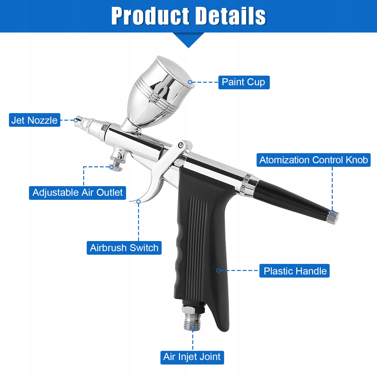 КОМПЛЕКТ ПОКРАСКИ ДЛЯ АЭРОГРАФНОГО ПИСТОЛЕТА, НАСАДКИ 0,3/0,5/0,8 ММ, ШЛАНГ