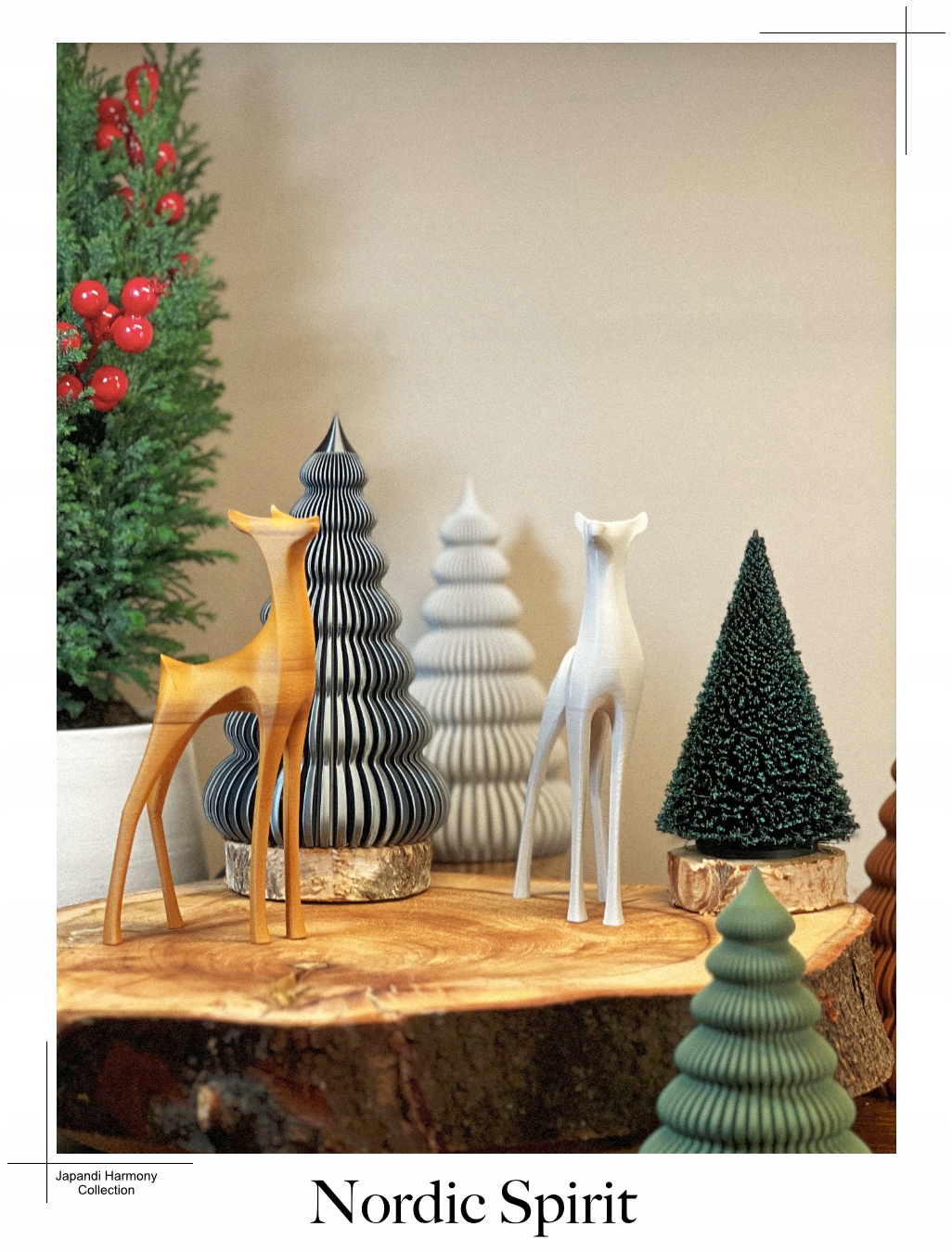 Эти фигурки идеально сочетаются с другими элементами наших коллекций. Набор «Олень и Олень» великолепно смотрится с нашими Елками-оригами или Ребристыми оленями.