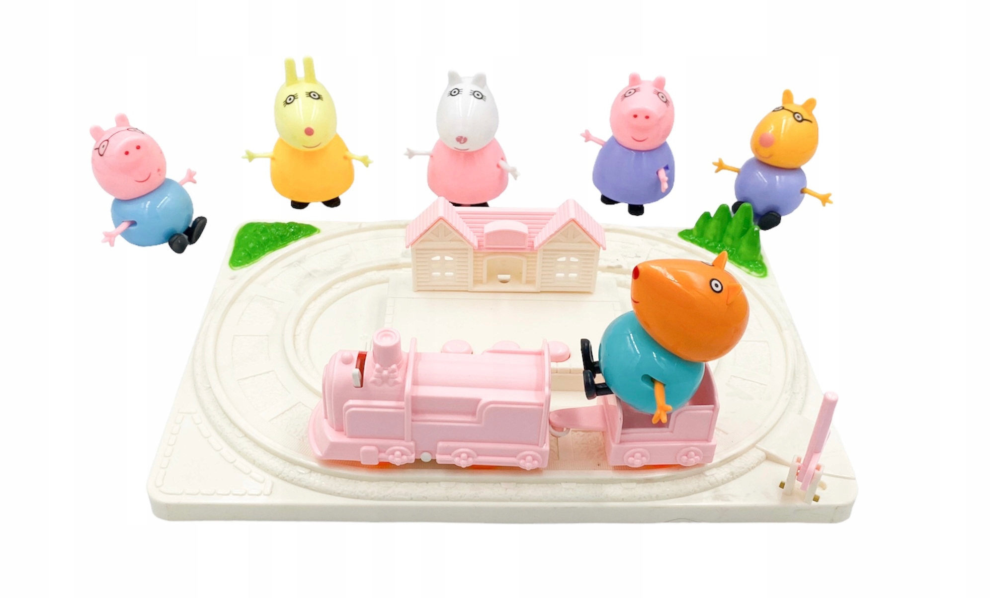 Если ваш ребенок любит Свинку Пеппе, у нас есть для него идеальная игрушка. Это трек, имеющий 3 кнопки, при нажатии издаются разные звуки: поезд, идущий по рельсам, гудок, звук скорой помощи/полиции. В набор входят 6 фигурок семейства Пеппа с подвижными руками и ногами. Входящие в комплект наклейки можно использовать для самостоятельного покрытия всего набора.