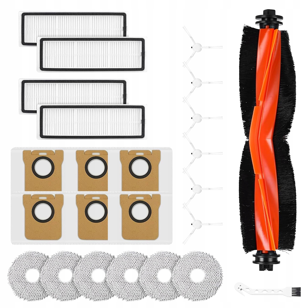⭐Набор из 24 аксессуаров для роботов-пылесосов Xiaomi X20+ / X10+, запасные части 1 основная щетка 6 протирочных салфеток 6 мешков для пыли 6 боковых щеток 4 HEPA-фильтра 1 чистящая щетка⭐