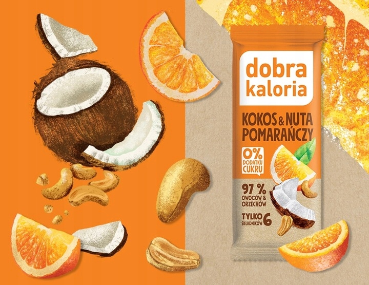 ХОРОШИЙ КАЛОРИЙНЫЙ батончик с кокосом и апельсином, БЕЗ САХАРА