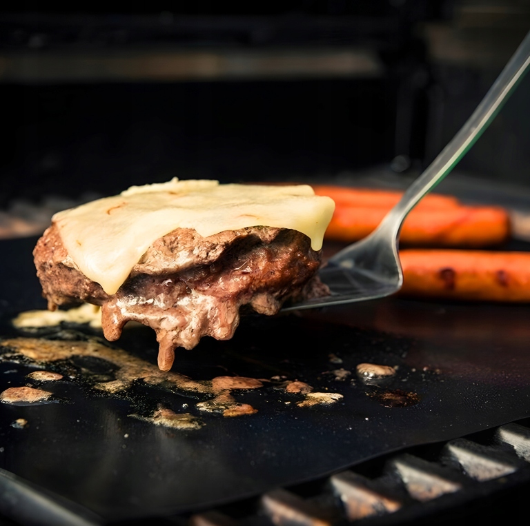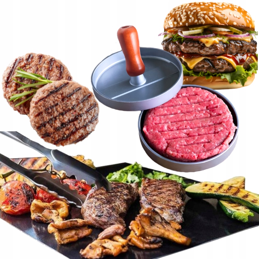 ⚡ Откройте для себя полный набор для любителей гриля и домашних бургеров! Наш тефлоновый коврик для выпечки и набор прессов для гамбургеров — идеальное сочетание для любого кулинара.