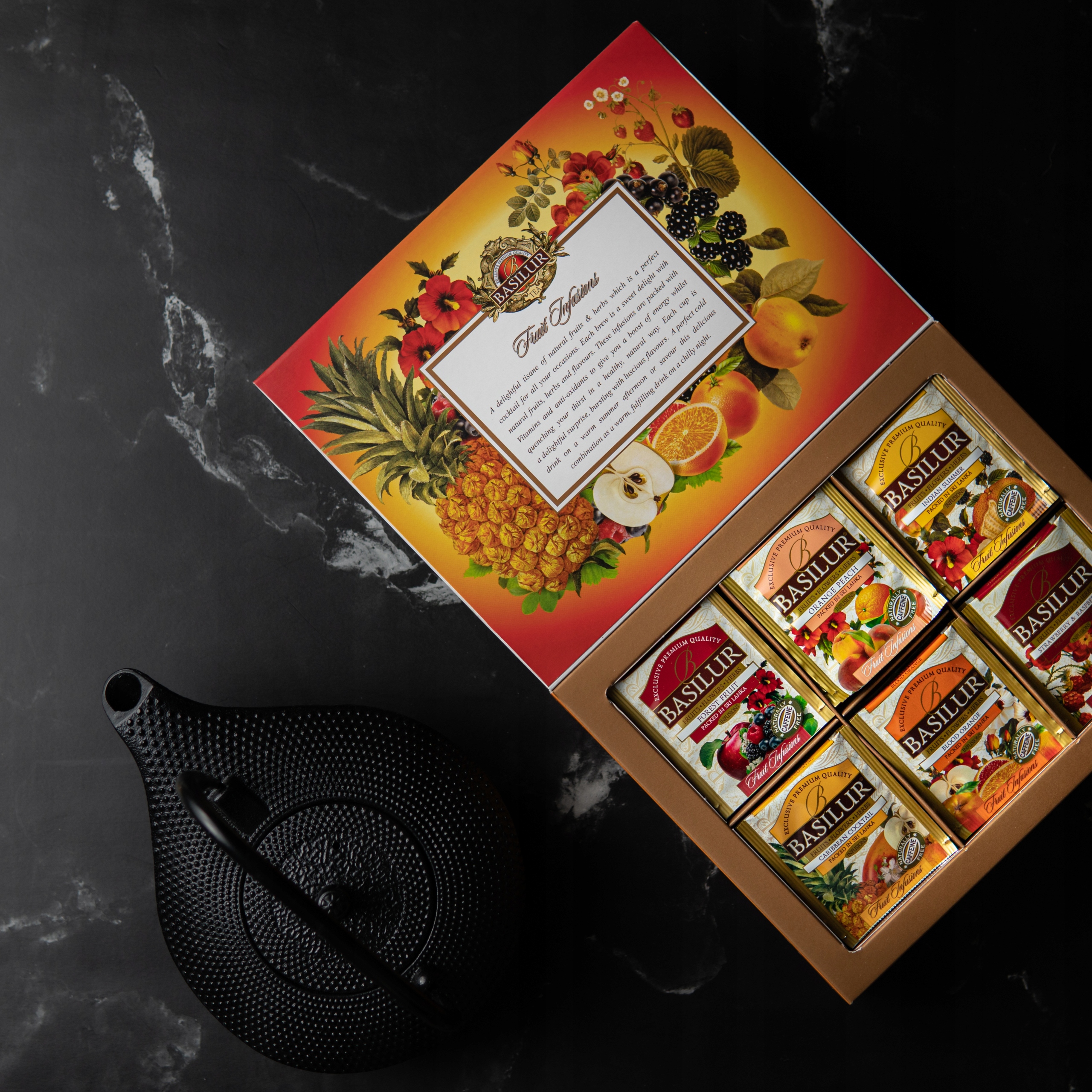 Подарочный набор чаев, наполненных сочными фруктами, травами и натуральными ароматизаторами.