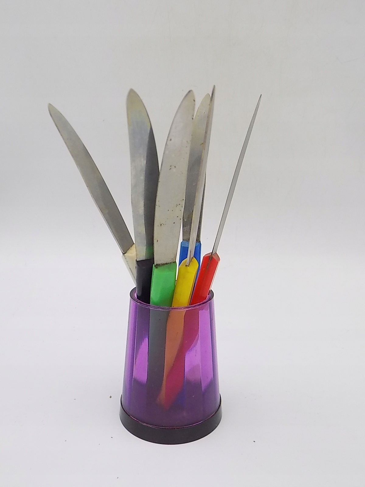 Набор фруктовых ножей в пластиковой подставке времен Польской Народной Республики. Размеры фрезы; 16,5 см. Рекомендую коллекционерам