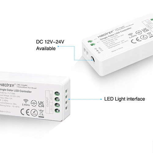 Модель FUT036S — это последняя версия диммера бренда MiBoxer для одноцветных светодиодных лент напряжением 12В-24В. Уменьшенные габариты, увеличенная мощность и возможность изменения частоты ШИМ-модуляции делают его непревзойденным и безотказным решением такого типа на рынке.