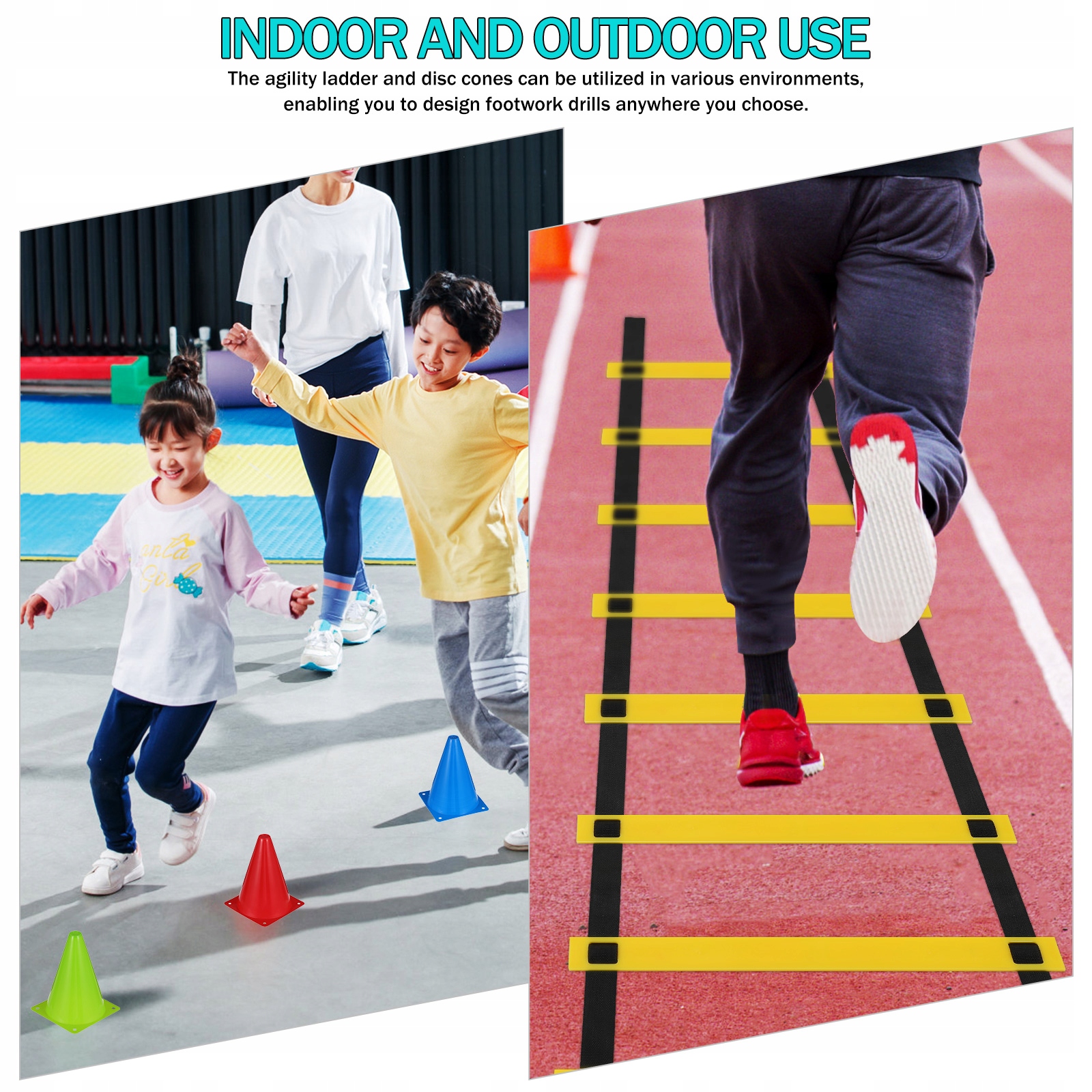 Поднимите свои спортивные результаты на новый уровень с помощью этого тренировочного комплекта Football Agility Ladder, разработанного специально для спортсменов, команд и любителей фитнеса. Этот универсальный комплект помогает улучшить скорость, работу ног, выносливость и контроль тела, что делает его идеальным для футбола, футбола, баскетбола или любого вида спорта, требующего ловкости.