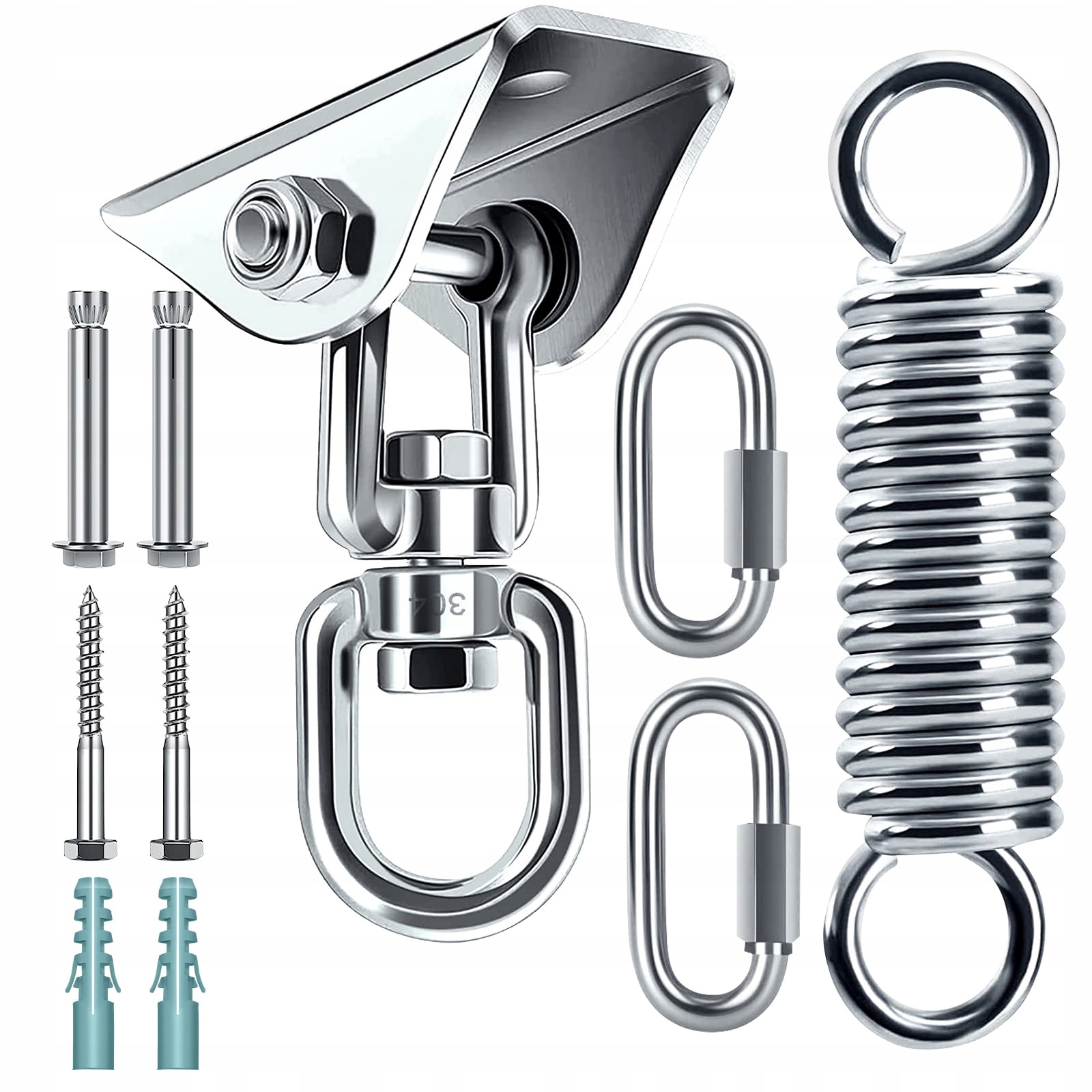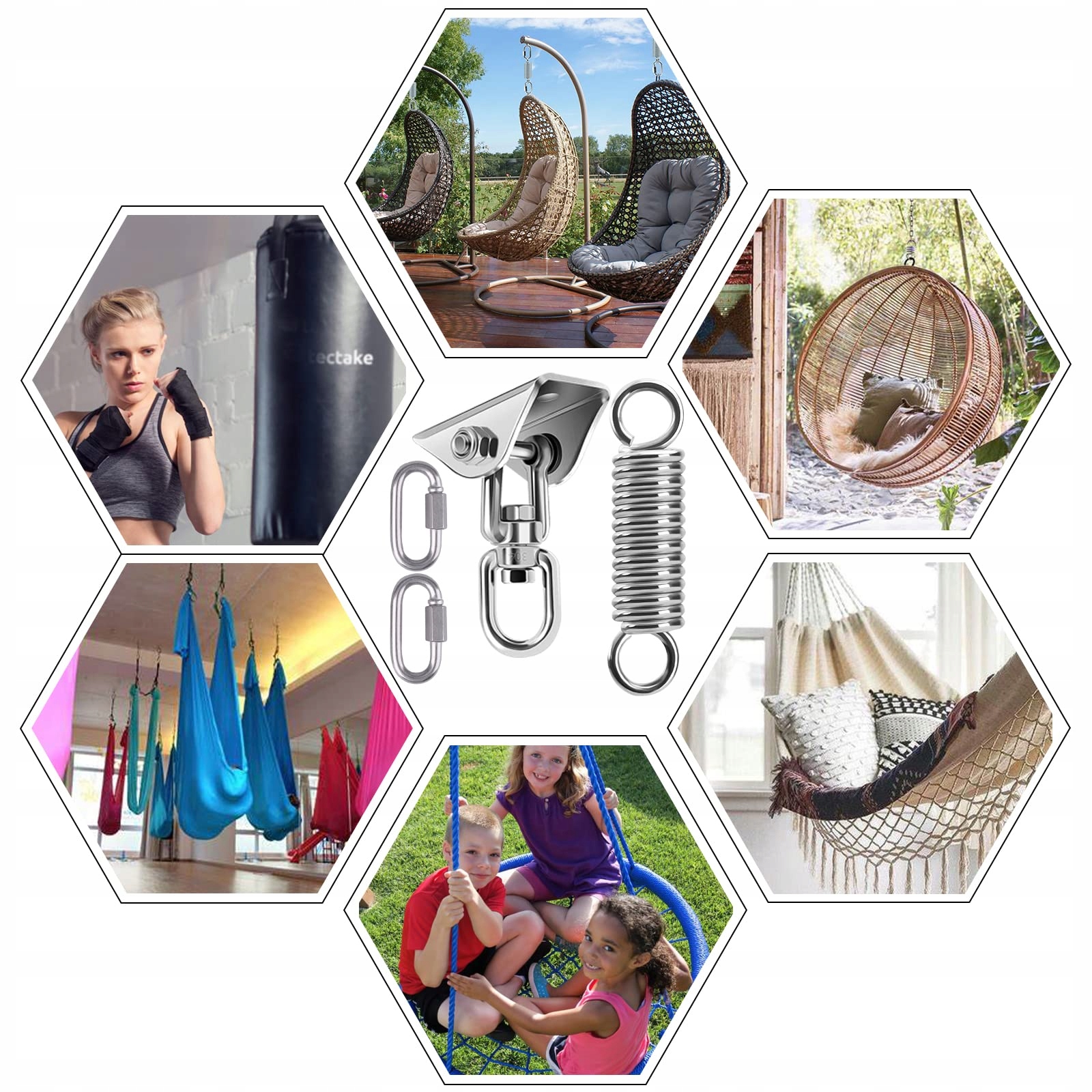 Потолочный крючок с грузоподъемностью до 450 кг, вращающийся 360 °. Большие участки применения - для использования внутри и снаружи его можно использовать для: подвесного кресла, подвесных ламп, гамака, бокса, шарфа, для ношения, шарфа для йоги, солнечного паруса, шарфа для ношения, подвесного кресла, подвесного кресла и т. Д.
