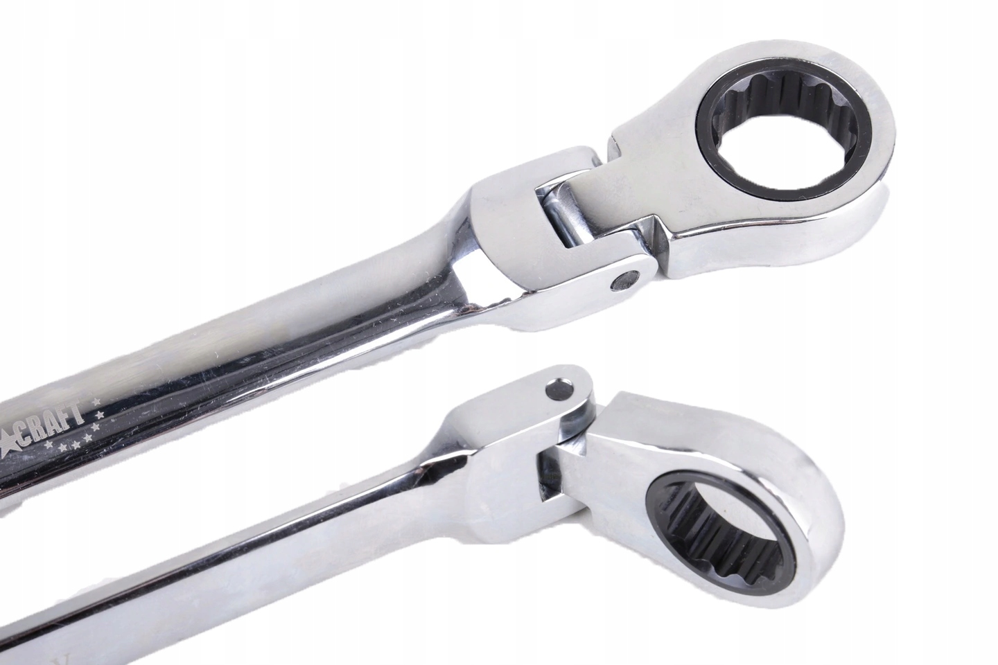 Малый размер и использование храпового механизма на шарнире позволяют поворачивать ключ на угол до 180° в каждом направлении. Храповые проушины ключей оснащены наконечником Surface Drive, который позволяет выкрутить винт с поврежденной головкой (резной, закругленной). Все клавиши изготовлены из хромованадиевой стали.