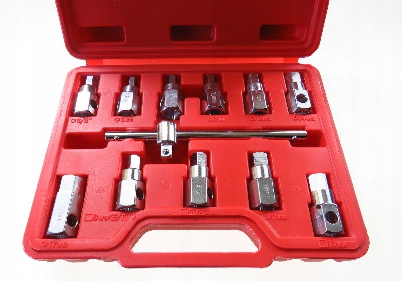 - Практичный и универсальный набор для большинства типов пробок для слива масла в легковых автомобилях и микроавтобусах.