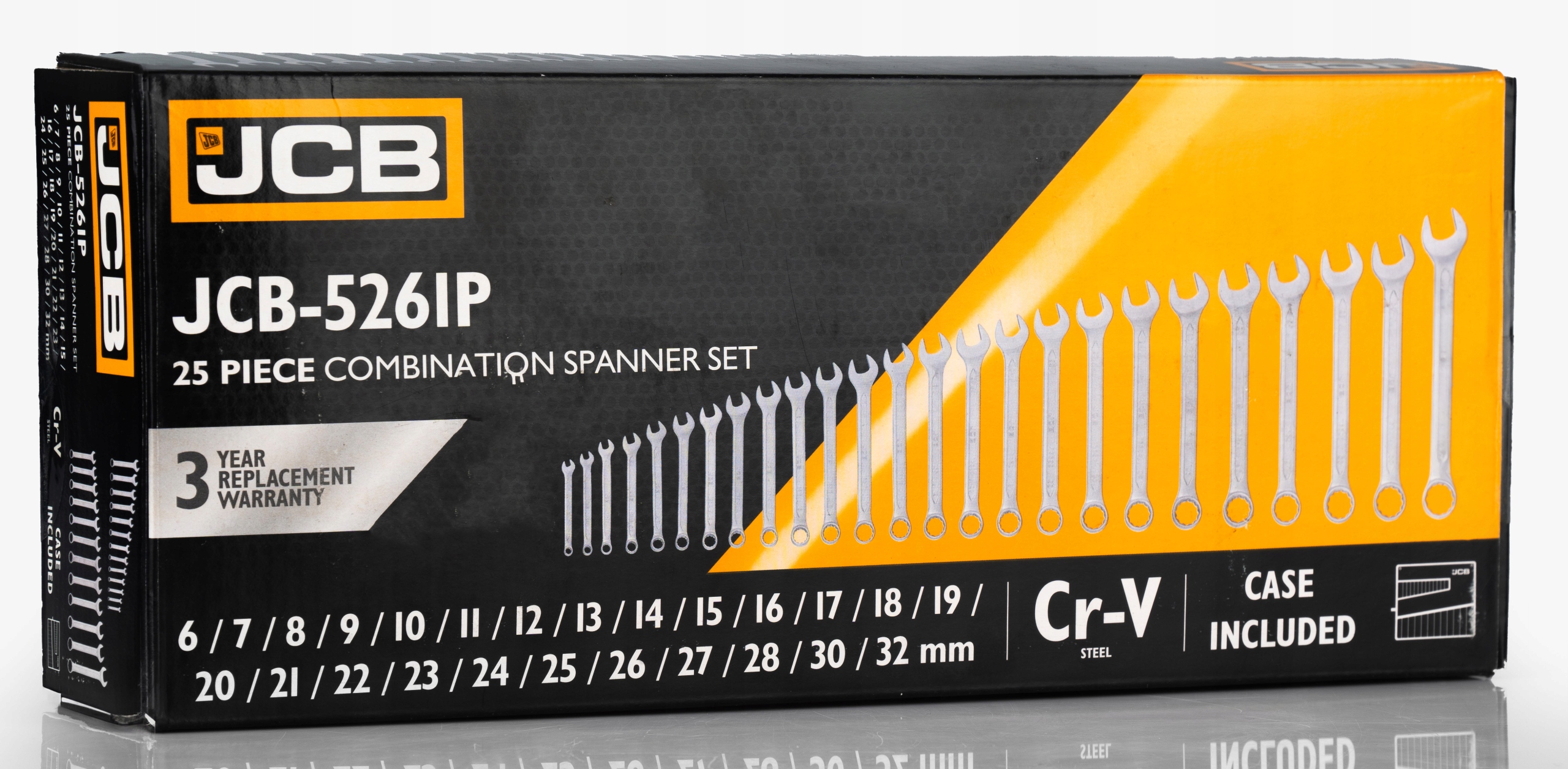 НАБОР КОМБИНИРОВАННЫХ КЛЮЧЕЙ 6–32 ММ, 25 ЭЛЕМЕНТОВ, СТАЛЬ CRV JCB