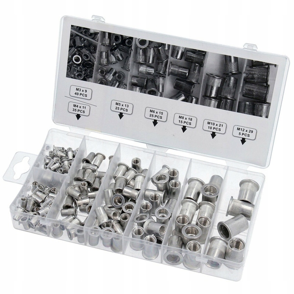 НАБОР ЗАКЛЕПОЧНЫХ ГАЙОК 155 ШТ. ЗАКЛЕПКА-ГАЙКА M3-M12