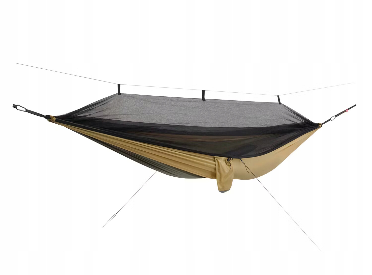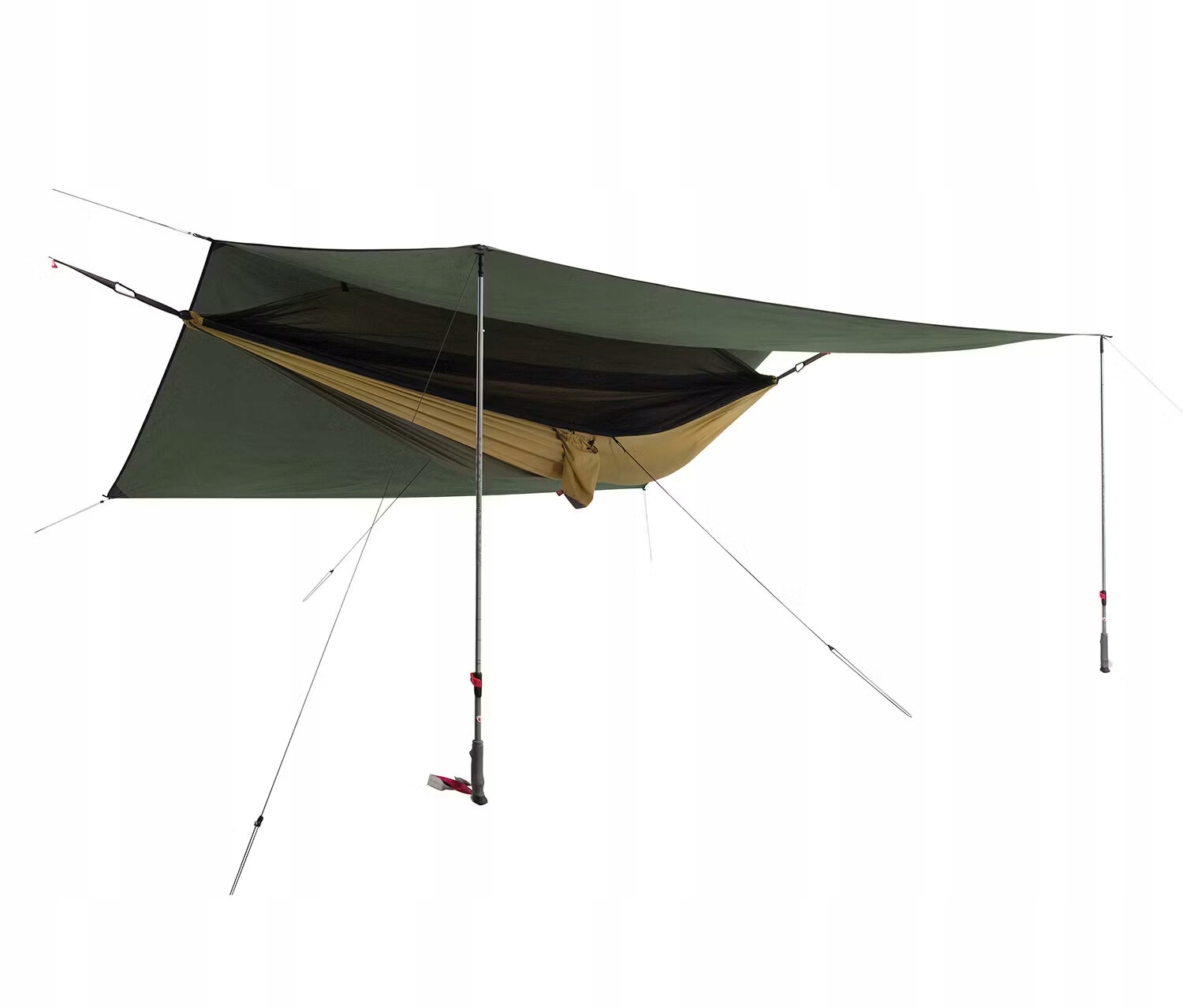 - Полный комплект с гамаком, москитной сеткой и брезентом.