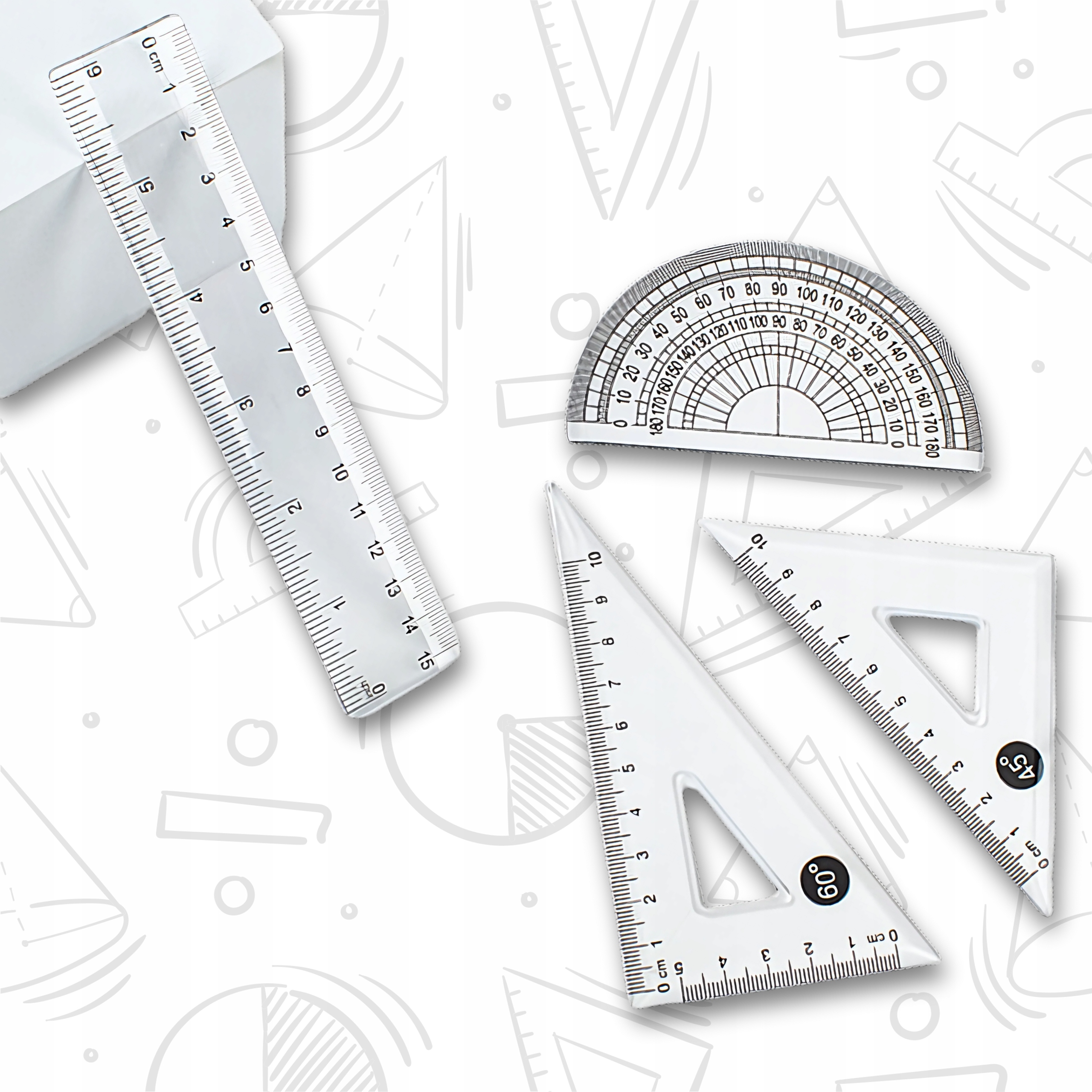 ГЕОМЕТРИЧЕСКИЙ ШКОЛЬНЫЙ НАБОР ИЗ 4 ЭЛЕМЕНТОВ ЛИНИРОВКА, КВАДРАТ, ТРАКЛАТОР, 15 СМ XL