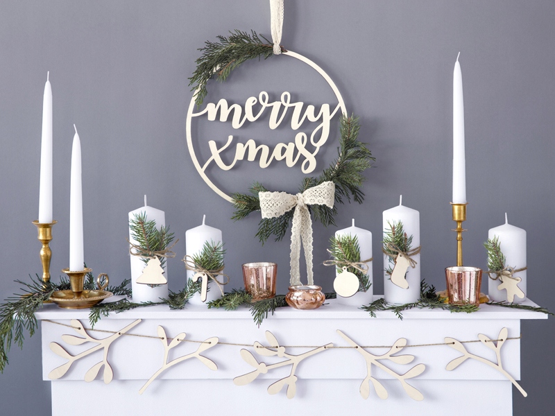 - Надпись «С Рождеством» – из дерева. , на льняной нити, размеры после сборки: длина ок. 87 см, высота ок. 17 см.