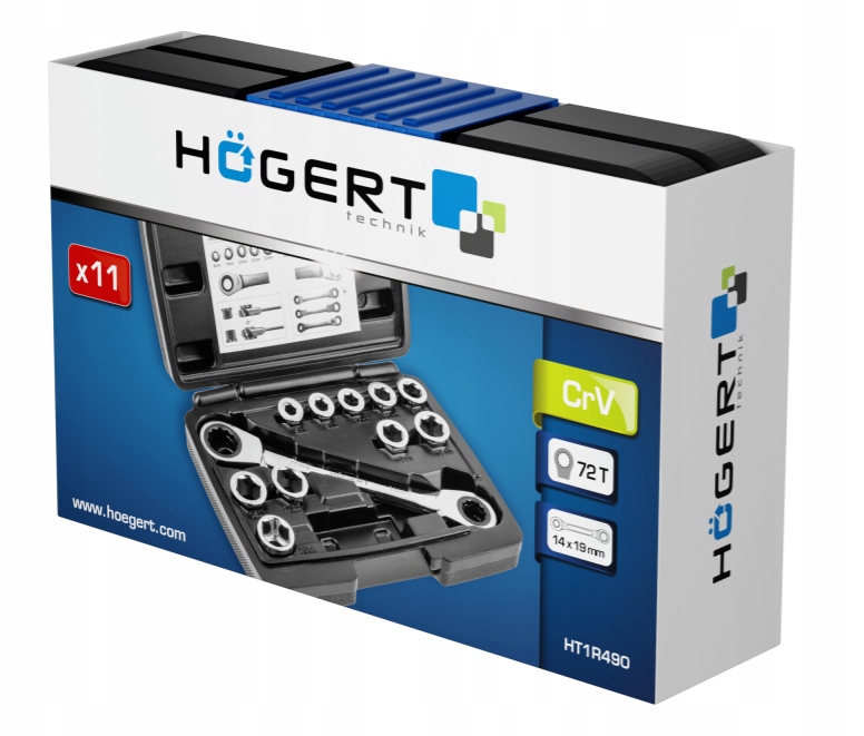 Hogert HT1R490 Ключ с храповым механизмом с головками, 11 шт.