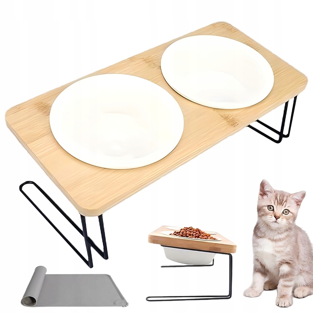 - 🐈Легко собрать, просто прикрепите металлический каркас к бамбуковой доске и вставьте миски для кормления.