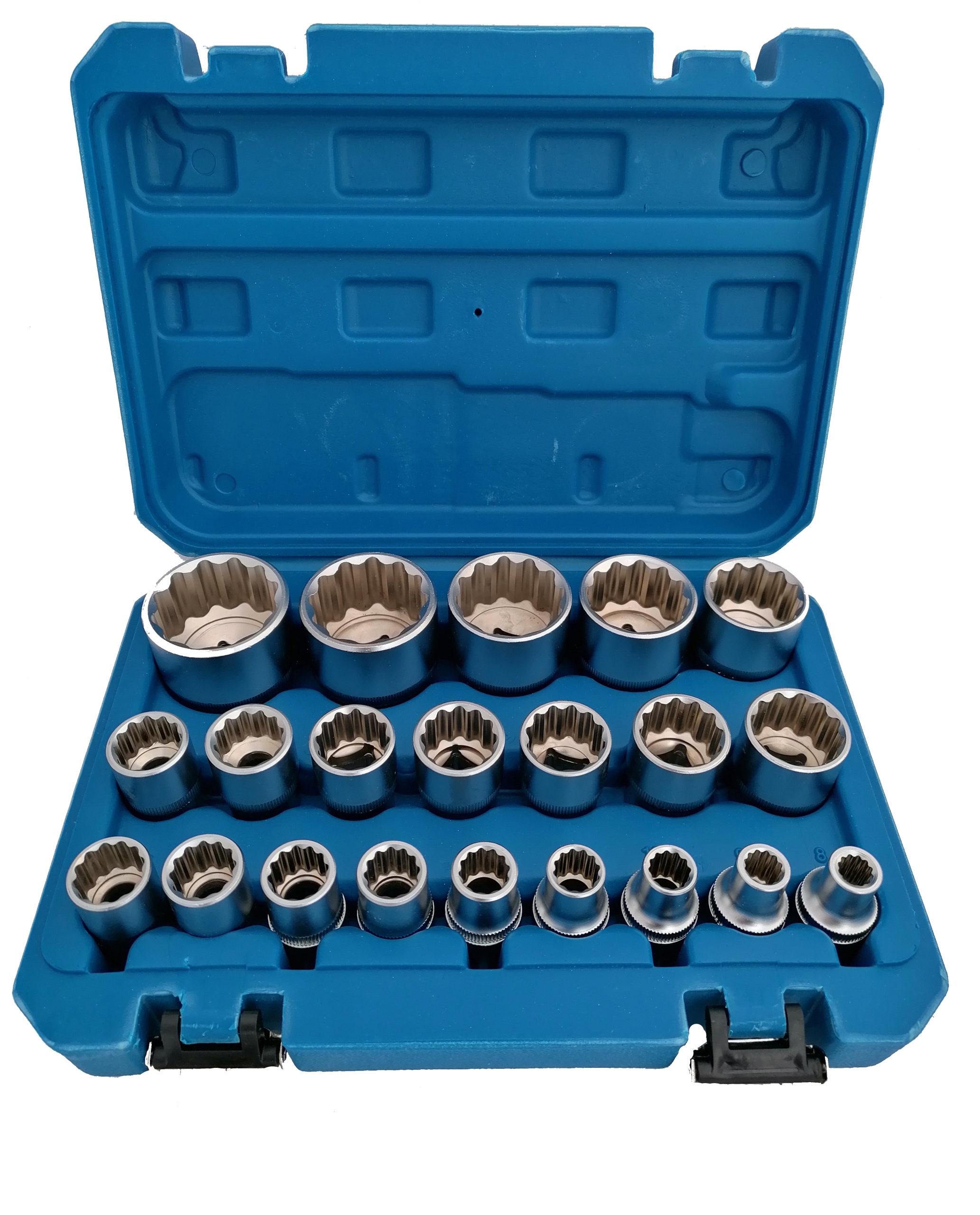 Практичный набор ключей SPLINE с головкой 1/2" в пластиковом кейсе для хранения. В набор входит 21 предмет в популярных Размеры Головки разработаны для профессионального использования. Изготовлены из прочной хромованадиевой стали.