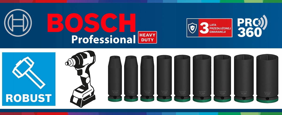 Набор ударных насадок Bosch PRO глубиной 1/2 дюйма, 9 шт. 2608003040