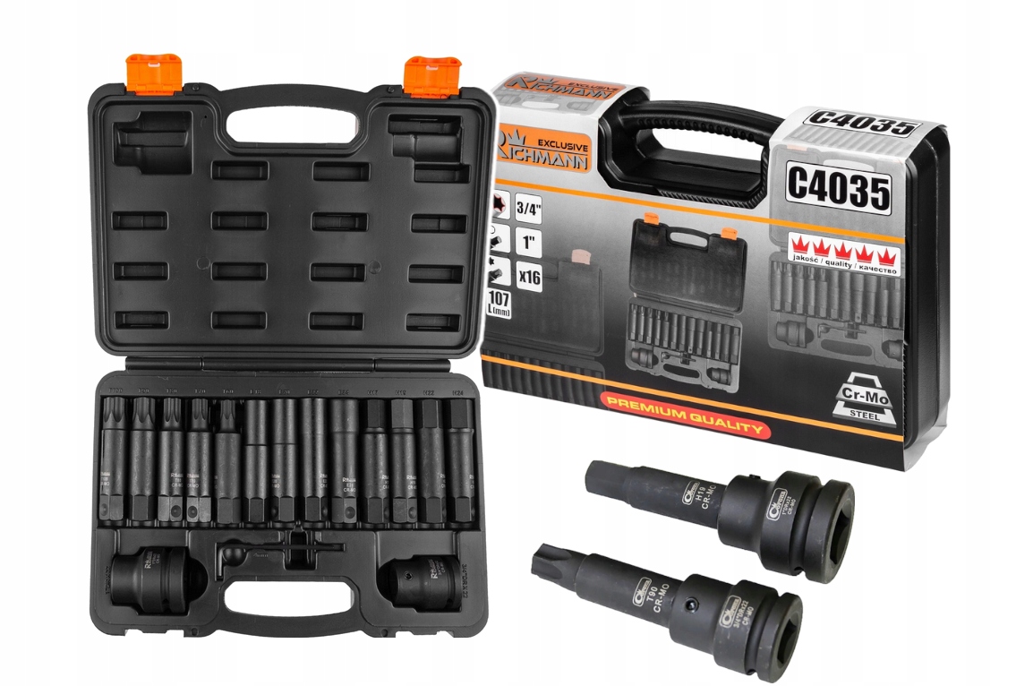 Набір головок ударних TORX, IMBUS 3/4, 1, 16 ел.