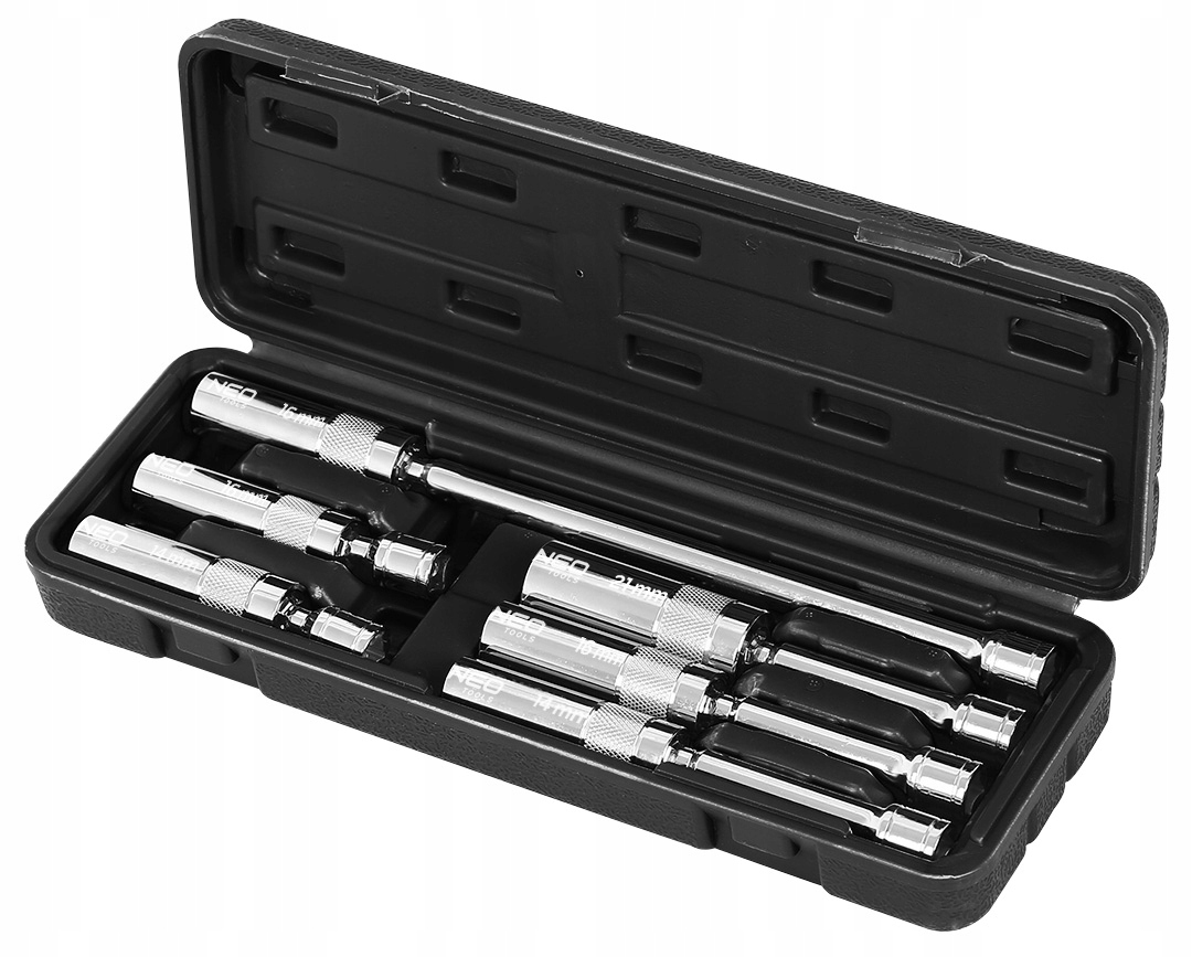 Набор головок шарнирных для свечей зажигания, 6 шт. 08-095 производства NEO Tools — это набор 12-гранных головок из хромванадиевой стали. В комплект входят следующие размеры: 3/8 x 14 x 100 мм, 3/8 x 16 x 100 мм, 3/8 x 21 x 150 мм, 3/8 x 14 x 150 мм. , 3/8 дюйма x 16 мм x 150 мм и 3/8 дюйма x 16 мм x 275 мм. Предназначен для эффективной замены свечей зажигания в автомобилях. Благодаря широкому размерному ряду является универсальным решением для многих моделей автомобилей. Набор шарнирных головок от бренда NEO Tools, рекомендуемый любителям DIY и механикам.