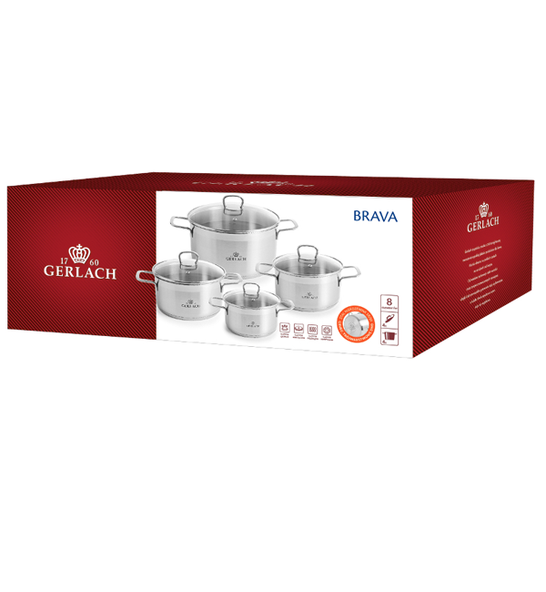 НАБОР ГОРШКОВ GERLACH BRAVA 8 EL / ИНДУКЦИОННАЯ СТАЛЬ