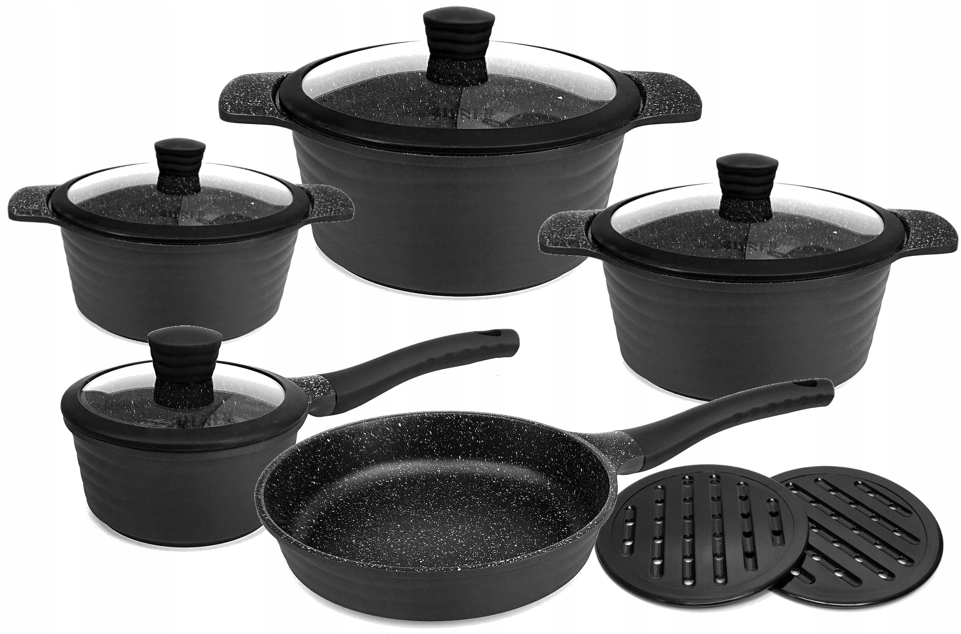 Высококачественный набор алюминиевых горшков, покрытых мраморным слоем, неприживающим, может использоваться во всех типах: индукция, электрическая, газ, церамика и галогена