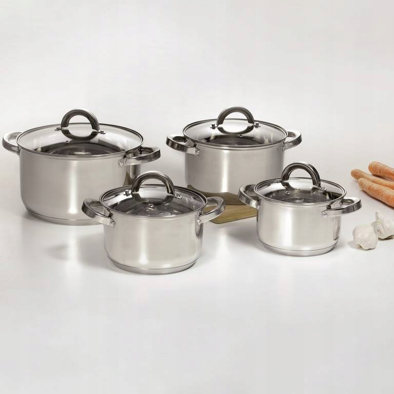 Набор кастрюль Berry из 13 предметов от Ambition. Кастрюли с крышками из закаленного стекла и металлическими ручками. Они изготовлены из высококачественной нержавеющей стали. Кастрюли современной и элегантной формы с зеркальной отделкой внутри и снаружи. На внутренних стенках имеется шкала, облегчающая измерение жидкостей. Кастрюли имеют толстое дно (алюминий 0,5 мм + железо 1,5 мм + алюминий 0,5 мм), обеспечивающее быстрый и равномерный нагрев кастрюли, и толстые закругленные стенки типа Belly (0,5 мм). Ручки прикреплены к горшку заклепками. Набор кастрюль Berry легко содержать в чистоте, его можно мыть в посудомоечной машине, он подходит для всех типов плит, включая индукционные.