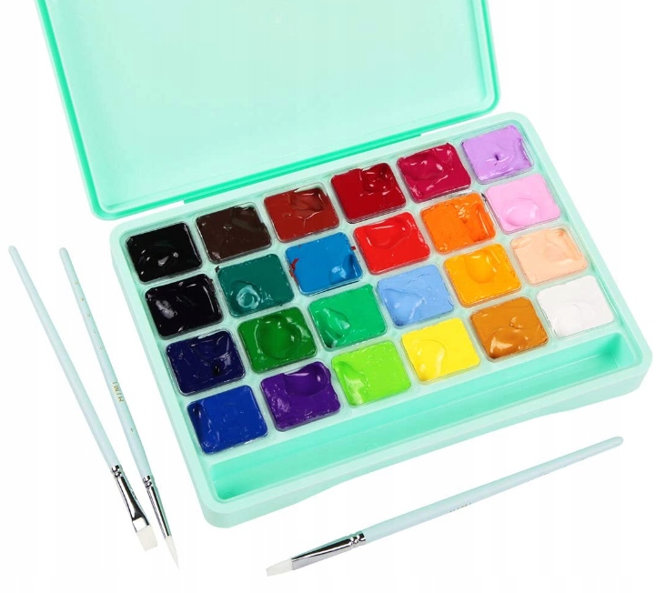 НАБОР ГУАШЕВЫХ КРАСОК ГУАШЬ ДЛЯ РИСОВАНИЯ + КИСТИ 24 шт х 30 мл