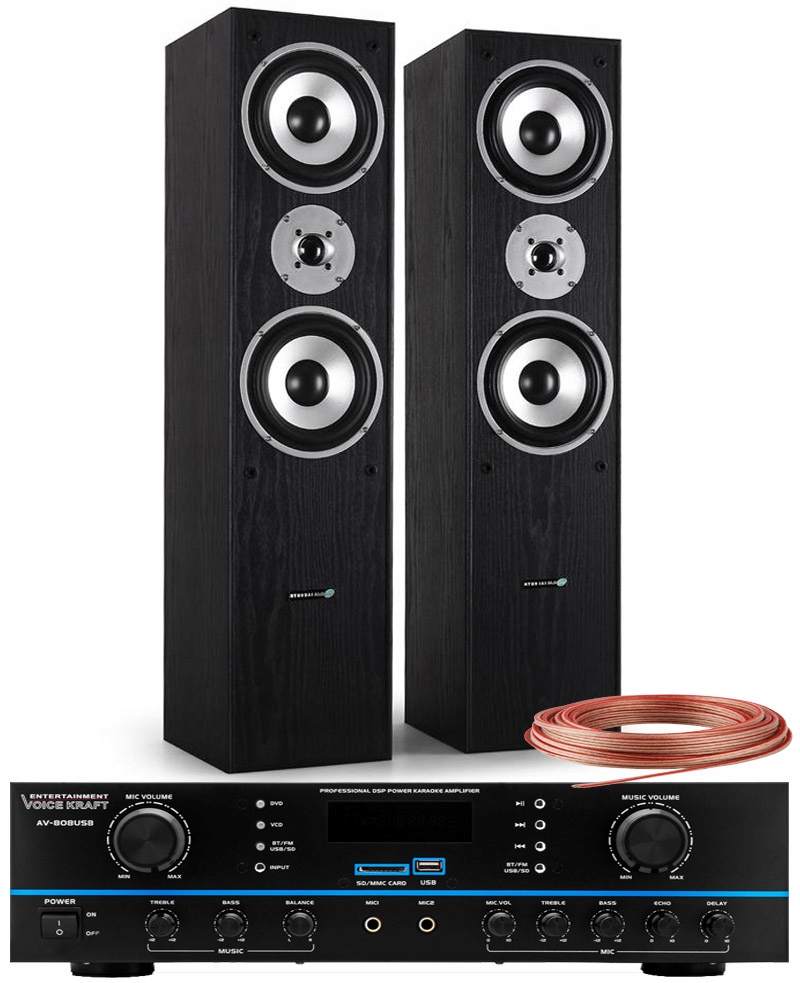 КОМПЛЕКТ ВЫСОКОГО КЛАССА ДИНАМИКИ + УСИЛИТЕЛЬ С BLUETOOTH, РАДИО, USB-ВХОДОМ, MP3-ПЛЕЕРОМ, ДВА МИКРОФОННЫХ ВХОДА - ОТ ИЗВЕСТНОЙ КОМПАНИИ VOICE KRAFT - ВЕСЬ КОМПЛЕКТ МОЖЕТ ПОДКЛЮЧИТЬСЯ К ДОМАШНЕМУ ТЕАТРОТУ, DVD, КОМПЬЮТЕРУ И Т.Д. ...