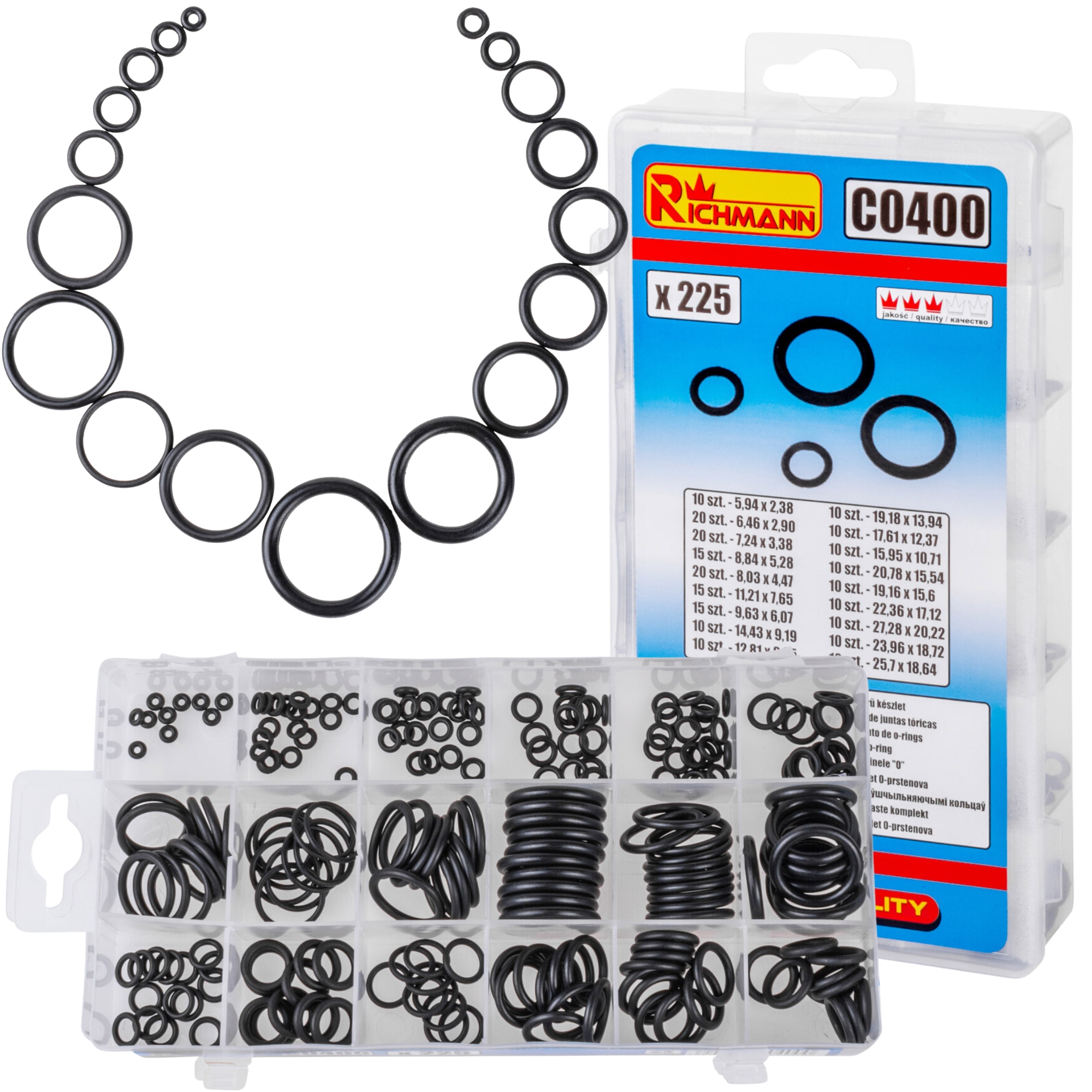 РЕЗИНОВЫЕ УПЛОТНЕНИЯ НАБОР 225 ШТ. ЧЕРНЫЕ УПЛОТНИТЕЛЬНЫЕ КОЛЬЦА