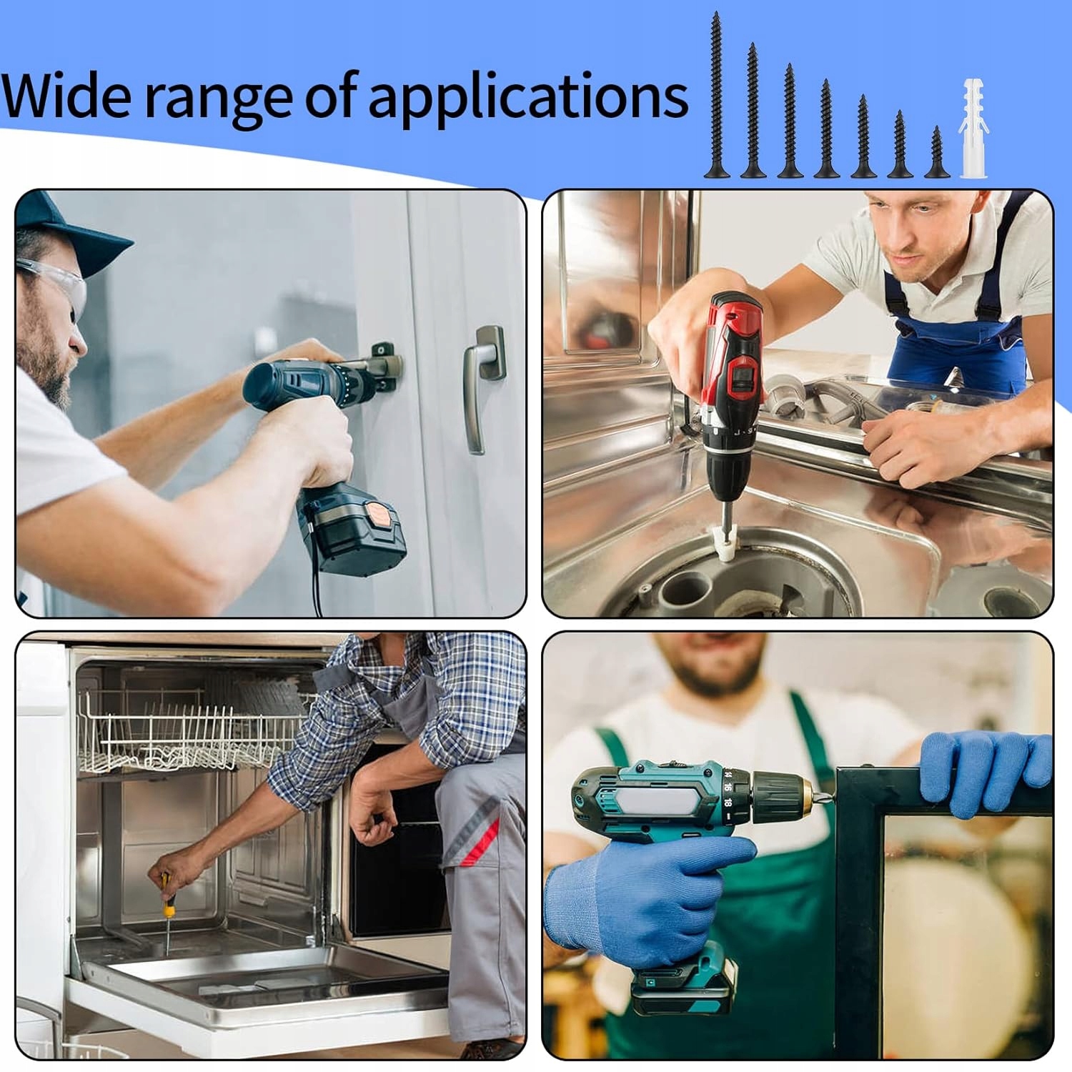 Набор идеально подходит для многих материалов, включая древесину, гипсовые доски, пластик и металл. Идеально подходит для дома, офиса, мастерской, а также при работе с машинами, мебелью, электрическим или коммуникационным оборудованием.