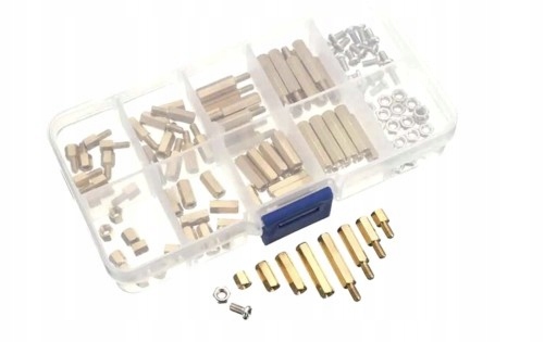 Набор необходимых винтов и проставок самых популярных размеров, необходимых для работы с модулями и электронными системами. Проставки изготовлены из прочной латуни. Все упаковано в практичную пластиковую коробку.