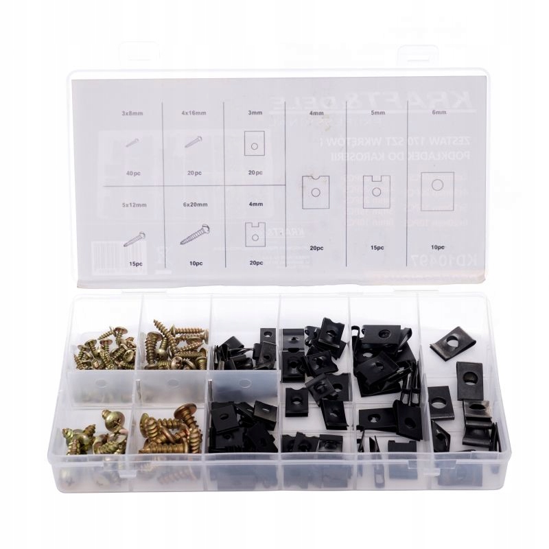 НАБОР ВИНТОВ И ШАЙБ ДЛЯ КУЗОВА 170 ШТ. ЗАЖИМЫ-ОРГАНИЗАТОРЫ РУЧКИ
