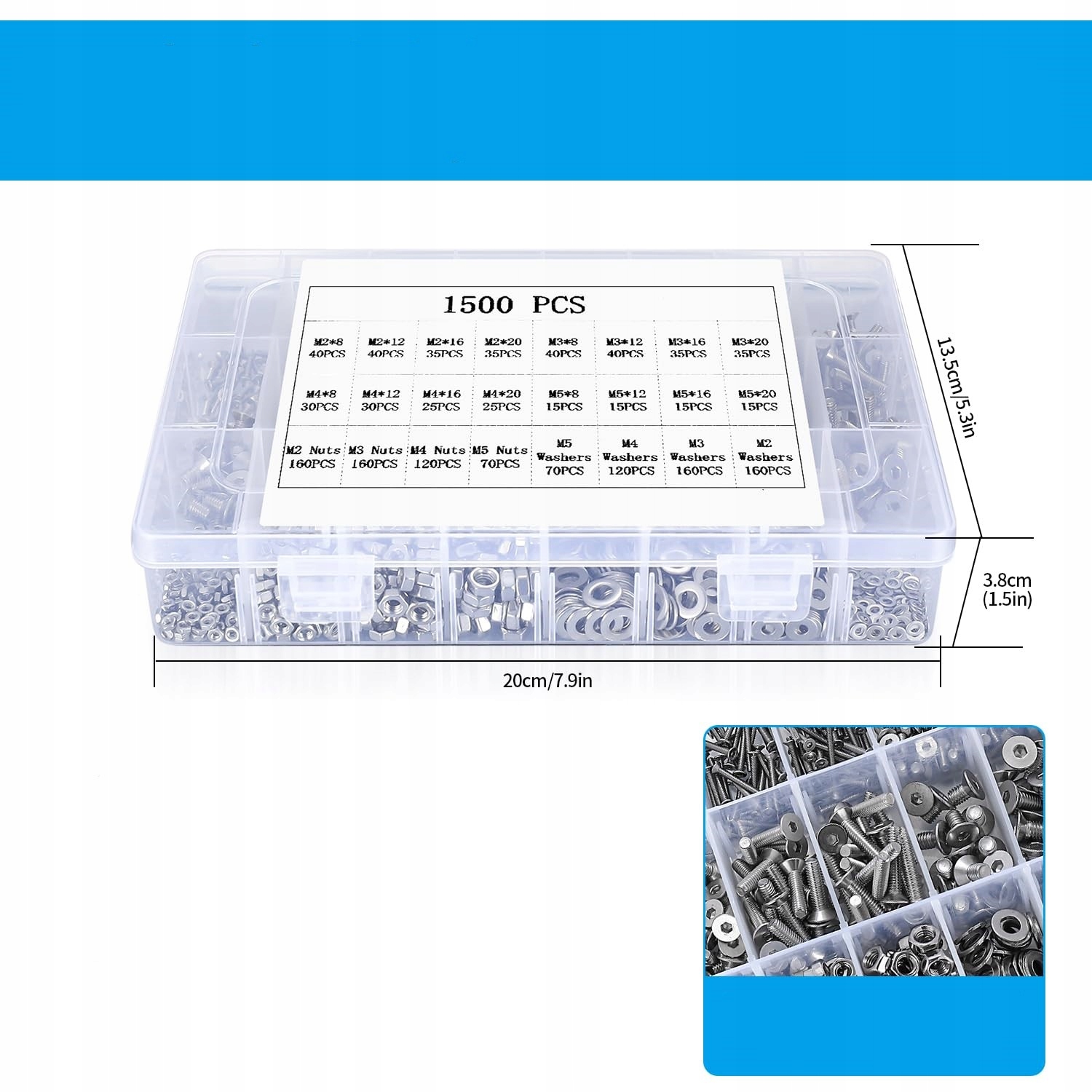 НАБОР ВИНТОВ С ШЕСТИГРАННОЙ ГОЛОВКОЙ M2 M3 M4 M5 ВИНТЫ ШАЙБЫ НАБОР ГАЙОК 1500 шт.